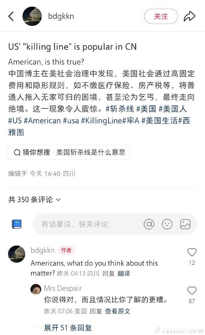 🔻老外:没那么好。美国斩杀线热点现场海外新鲜事