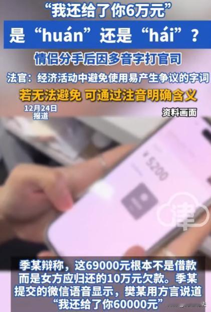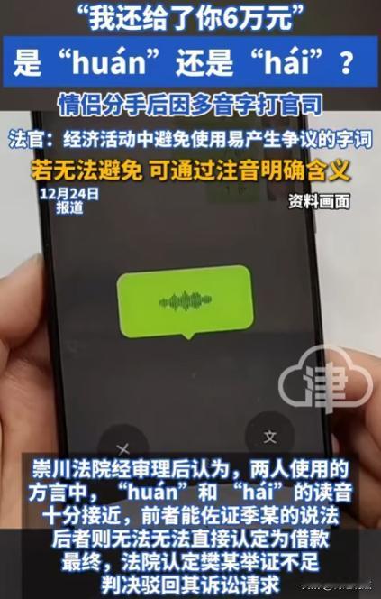 江苏南通,樊女士和季先生曾是情侣,两人资金往来也比较频繁,樊女士给季先生转了69000元,季先生转回8000元,后来两人关系破裂,樊女士以借款未还为由,起诉季先生要求还61000元本金及利息。季先生却称这69000元是樊女士还之前借他的10万元欠款。季先生还拿出了证据,一段樊女士发的语音,语音里樊女士用方言说:我还给了你60000元。因方言中“huán”和“hái”读音相近。最终,法院认为樊女士举证不足,诉讼请求被驳回。 (来源:红星新闻、现代快报) 樊女士和季先生,曾是一对热恋的情侣。 2021年,两人感情正好时,资金往来也比较频繁。 樊女士和季先生相处时,有一回,樊女士通过手机给季先生转了69000元。 当时两人也没多想,就觉得这钱转来转去很正常,毕竟情侣间互相帮衬、互相支持,钱的事也没分得那么清。 可没多久,季先生也给樊女士转了8000元。 季先生转这笔钱的时候,也没觉得有什么特别的,就想着自己手头有点钱,给樊女士转点,让她也能轻松点。 然而,感情这东西,有时候就像六月的天,说变就变。 樊女士和季先生因为一些生活琐事,矛盾越来越多,最终两人关系破裂,选择了分手。 分手后,樊女士觉得不对劲。 她觉得之前转给季先生的69000元,除去季先生转回来的8000元,剩下的61000元,季先生应该还给自己,因为这钱是借给他的。 于是,樊女士起诉季先生,要求季先生还这61000元本金,还得给些利息。 季先生接到传票时,心里那叫一个委屈。 他赶紧翻出之前和樊女士的聊天记录,还真找到了一段樊女士发的语音。 在这段语音里,樊女士用方言说:我还给了你60000元。 可这方言里“huán”(还钱)和“hái”(还有)读音太相近了,两人就因为这,也是吵得不可开交。 樊女士坚称自己说的就是:还有60000元是借款,季先生必须得还。 季先生一口咬定,樊女士说的就是:还了60000元,这69000元,就是樊女士还之前借他的10万元欠款。 樊女士觉得自己有理,证据就是转账记录,这钱明明是自己转给季先生的,季先生就该还。 季先生拿出那段语音,说这就是最有力的证据,证明樊女士是在还钱。 这里,有个问题,情侣间的资金往来,到底该怎么界定是借款还是还款呢? 有人觉得,转账记录就是铁证,可有时像这种方言上的问题,就容易产生歧义。 大家觉得,在这种情况下,转账记录能完全说明问题吗? 情侣在恋爱期间,很多资金往来都是基于感情,没有留下明确的书面证据。 就像樊女士和季先生,当时转钱的时候,谁也没想着要写个借条什么的。 那要是以后分手了,一方说钱是借的,另一方说不是,这该怎么判断呢? 大家在恋爱期间,会和对方有资金往来吗?会留好凭证吗? 这钱到底算借款还是还款,双方都觉得自己占理,这证据能不能说明问题,这钱到底该不该还呢? 根据民事诉讼法规定,当事人对自己提出的主张,有责任提供证据。 这就是,谁主张,谁举证原则。 樊女士主张这61000元是借款,她提供了转账记录,这转账记录只能证明她给季先生转过钱,可不能直接证明这钱就是借款。 借款合同,是借款人向贷款人借款,到期返还借款并支付利息的合同。 要证明是借款,除了转账记录,最好还得有借条、借款协议或者能证明双方有借贷合意的聊天记录等。 季先生拿出了语音,虽然因为方言问题有争议,但也在一定程度上让借贷关系存疑了。 樊女士没办法再提供其他有力证据证明这6万是借款,那她就没完成自己的举证责任。 感情好的时候,可能觉得钱的事无所谓,可一旦感情没了,情和理可能就不管用了,这时候就得靠法来解决问题。 从情上说,樊女士和季先生曾经是情侣,本应该互相理解,可因为钱闹成这样,也挺可惜的。 从理上讲,樊女士觉得自己借了钱就该还,这也没错。 可从法上说,她没足够的证据,就没办法支持她。 要是樊女士能提供聊天记录,证明这61000元是借款,会支持她的诉求吗? 根据《民法典》的规定,借款合同是借款人向贷款人借款,到期返还借款并支付利息的合同。 要是樊女士能提供聊天记录证明双方有借贷合意,再加上转账记录,这就形成了完整的证据链,能证明这61000元是借款,她的诉求,大概率会被支持。 法院认为: 季先生拿出的语音证据,让樊女士主张的借贷关系存疑。 按照“谁主张谁举证”的原则,樊女士除了转账记录,没有其他更有力的证据来证明这61000元是借款。 樊女士觉得自己明明就是借了钱给季先生,怎么就说不清了呢? 可法律讲究的是证据,没有足够的证据,没办法支持她的诉求。 最终,法院判决: 樊女士举证不足,判决驳回了她的诉讼请求。 樊女士怎么也没想到,自己会败诉。 情侣间资金往来,哪怕感情再好,也最好留好凭证。 不然,一旦日后,闹上法庭,有理,都可能说不清。