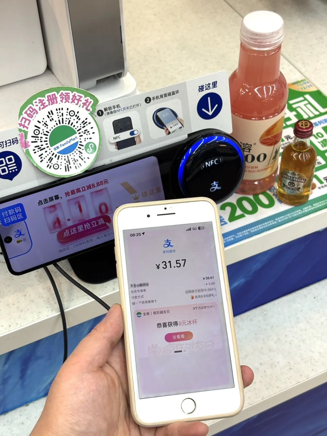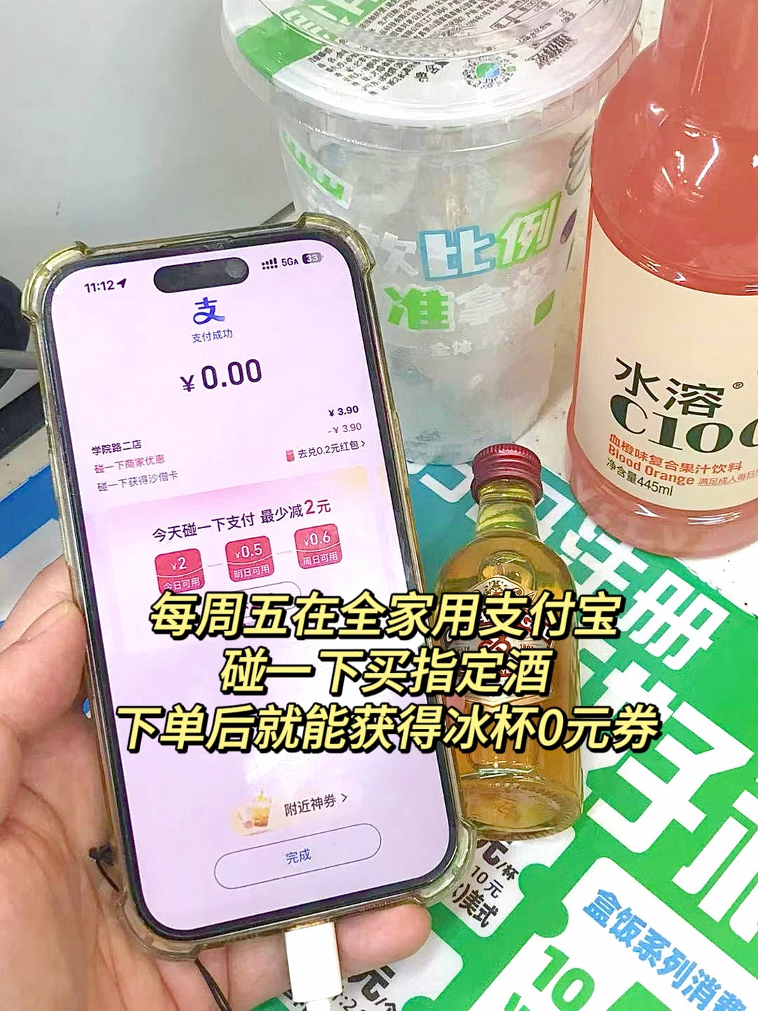 身为打工人,上了一周的班累到晕厥 周五下班后肯定得第一时间来点微醺快乐 我就喜欢在周五下班后到便利店DIY一杯微醺快乐水 网上看了很多漂亮酒,上周五也自己做了一杯 威士忌+西柚汁+冰 清清爽爽的吼吼喝!疲倦一下都byebye了~ - 而且我这个冰杯是免费🉐️! 因为周五是支付宝的疯狂碰友日活动 在全家买酒就送冰杯! 活动tips👉🏻 每周五在全家⽤⽀付宝碰⼀下买指定酒,下单后就能获得冰杯0元券,直接拿着冰杯用碰一下核销就👌🏻 100 w份限量送!先到先得!姐妹们快冲啊!