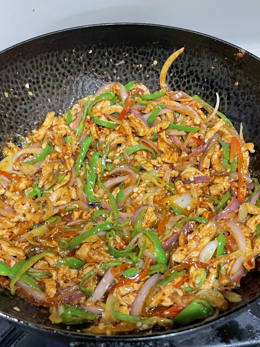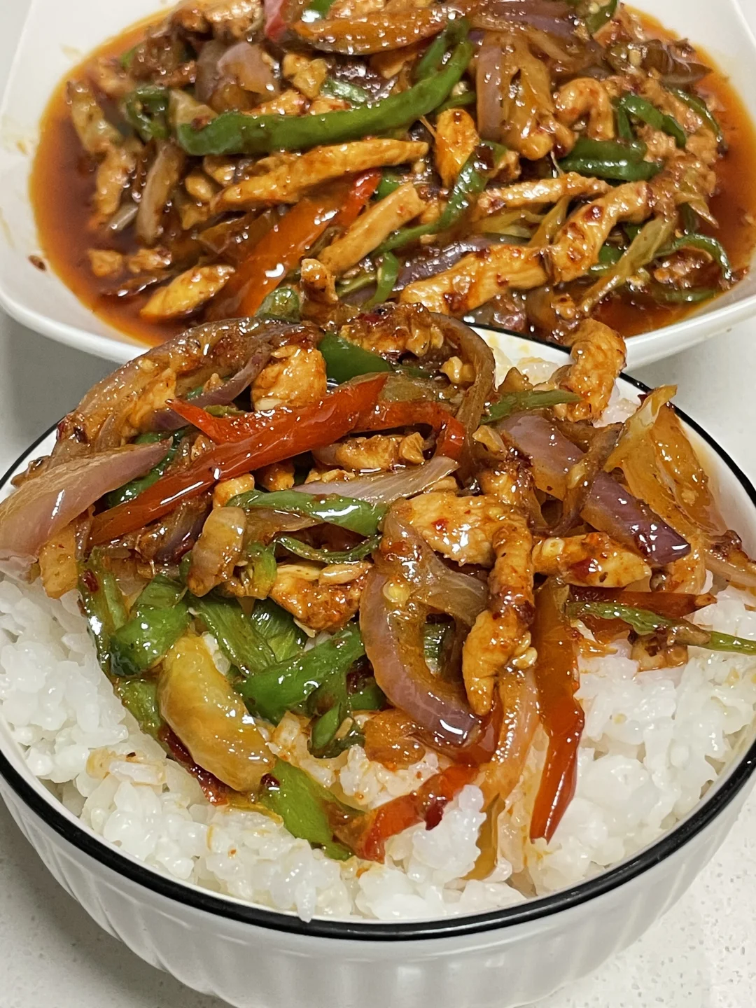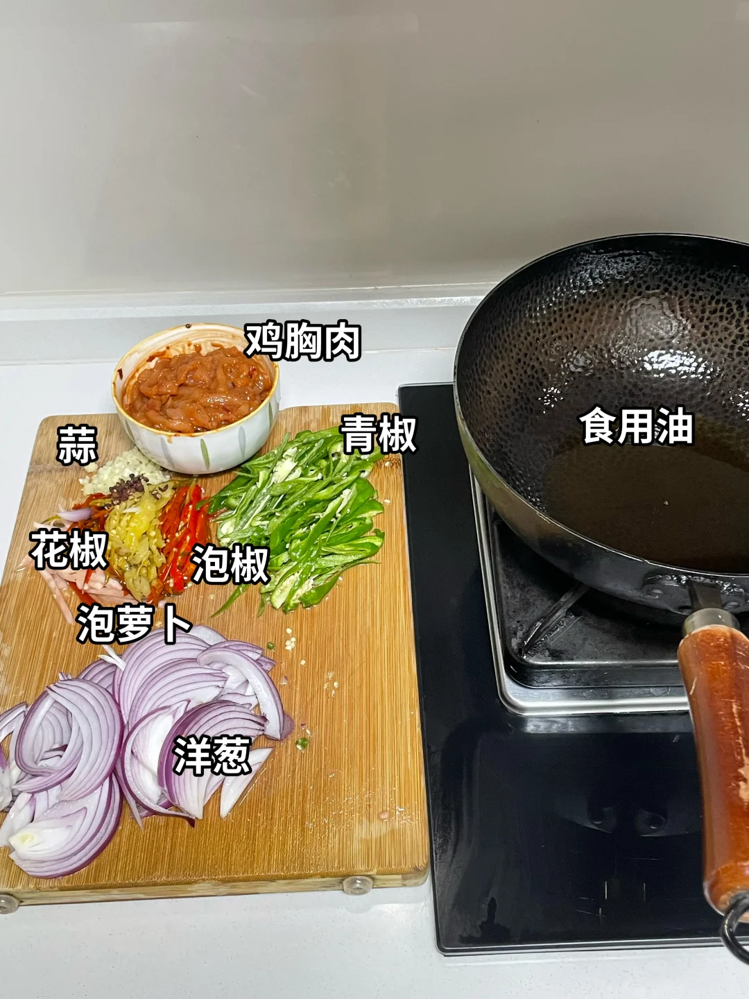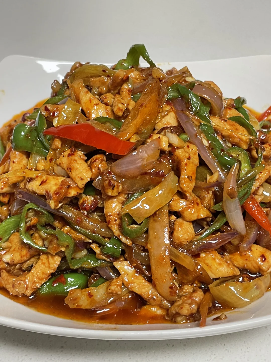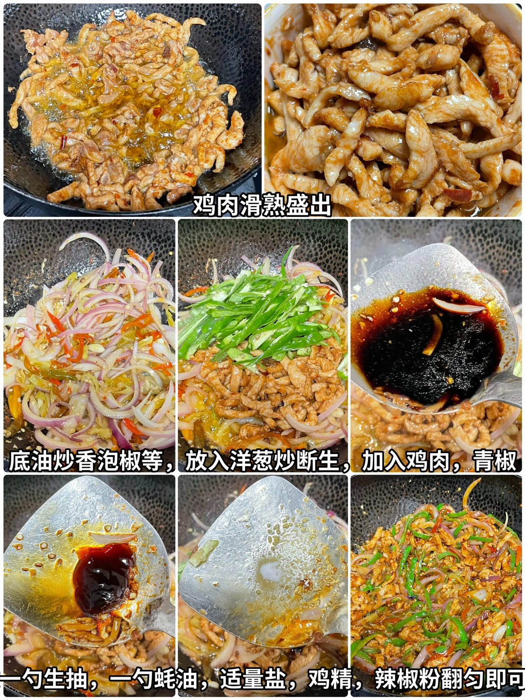 姐妹们,今天依旧给大家出一个家常下饭菜,泡椒、洋葱、鸡胸肉、鸡肉嫩滑,再加上泡椒和洋葱,真的巨下饭。喜欢的姐妹可以尝试做一下。 🌶️食材:鸡胸肉,泡椒,洋葱,青椒 👩‍🍳做法: 1⃣️鸡胸肉切丝,放生抽、蚝油。淀粉、胡椒粉、米酒,豆瓣抓匀腌制10分钟。 2⃣️然后再切入一些青椒、洋葱,再准备多多的泡椒和。一块儿泡萝卜切成丝,再来一点蒜,几粒花椒。 3⃣️起锅烧油,油热将鸡胸肉滑熟盛出,锅里的底油炒香泡椒,泡萝卜,花椒、蒜。然后放入洋葱炒断生,加入滑熟的鸡胸肉和青椒丝,调味加入1勺生抽,1勺蚝油,适量的盐和鸡精。出锅之前再来点辣椒粉翻匀即可出锅,这样做出来的鸡胸肉真的是泡椒味十足,巨下饭,喜欢的姐妹试试吧。