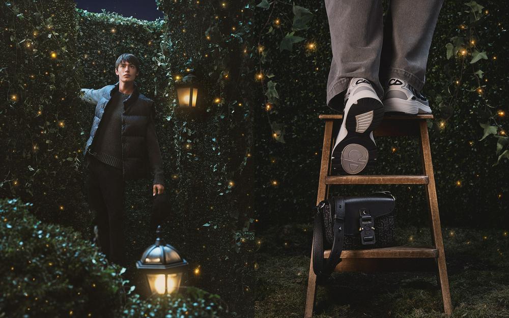男装部分延续Dior一贯的标识语言与功能取向。羽绒背心以黑色棉质混纺面料打造,Oblique印花贯穿其中,背面点缀Dior橡胶补丁,立领与贴边口袋强化实穿属性。DiorIcons针织衫来自2026春季男装系列,选用灰色山羊绒平纹针织面料,肩部融入灯芯绒拼接。小号马鞍翻盖信使包以黑色Oblique印花材质结合粒面牛皮革马鞍翻盖,并饰以铝扣细节,兼顾容量与辨识度。B30Countdown科技运动鞋则以现代跑步运动为灵感,采用N3O尼龙等多层半透明科技面料,饰以海军蓝色塑橡胶镶片与CD30标志。