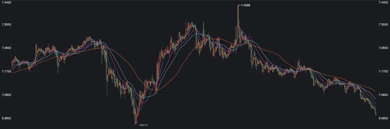 过去的两天,人民币走得太强了,离岸人民币目前已经到了7.00,如果说11月下旬之前人民币就在持续走强,其实走势上并不是那么明显,主要是台阶式的向上,减少了短线刺激的快感,那么从11月下旬之后,从人民币的走势看,基本上出现了加速向上的迹象,尤其是最近两天开启了直线向。   为什么今天要特别提到这个呢,因为从过去的经验看,人民币7的整数位置都相对敏感,可以说是一个重要的分水岭,以这两年的波动情况看,往往人民币在接触到7或者还没有到7,甚至涨到7的时候,通常都会快速的反转向下,所以似乎就形成了7之上的多头陷阱。   之所以如此,我觉得还是央行一直在坚持一个理念,就是人民币不过度的升值,也不过度贬值,要保持人民币汇率的稳定,这个稳定的区间大概在7到7.4附近,以这个情况看,目前离岸人民币即将破7,关键是看出现这个现象的时候,央行会做如何表态,这非常重要。   上面说了这么多,我发现人民币的升值多少与A股的走势周期那么点关联,比如说今年的4月8日离岸人民币见到了短期低点7.42之后,就开启了一波明显的升值趋势,而这个过程一直持续到了现在,伴随的也是A股的大周期上涨。   现在问题来了,如果说这次人民币到了7之上,朝着6左右的水平迈进时,央行还会不会出手呢,到时候人民币会不会如前面几次那样,反转向下,那样的话,A股的周期是否会受到影响,我觉得这点非常重要。   如果是这样,当前大家应该采取什么样的操作策略,各位还是要做到心中有数。