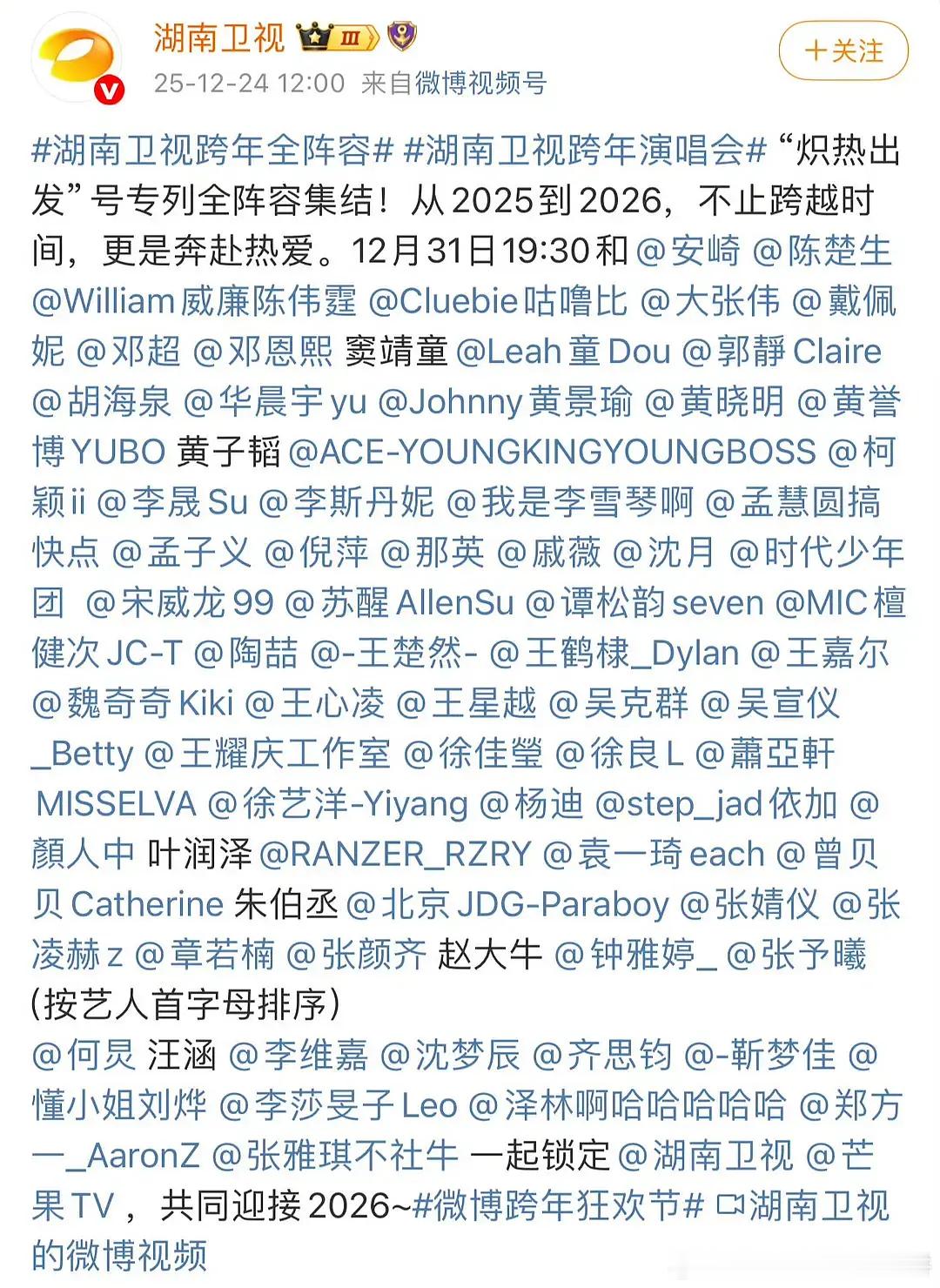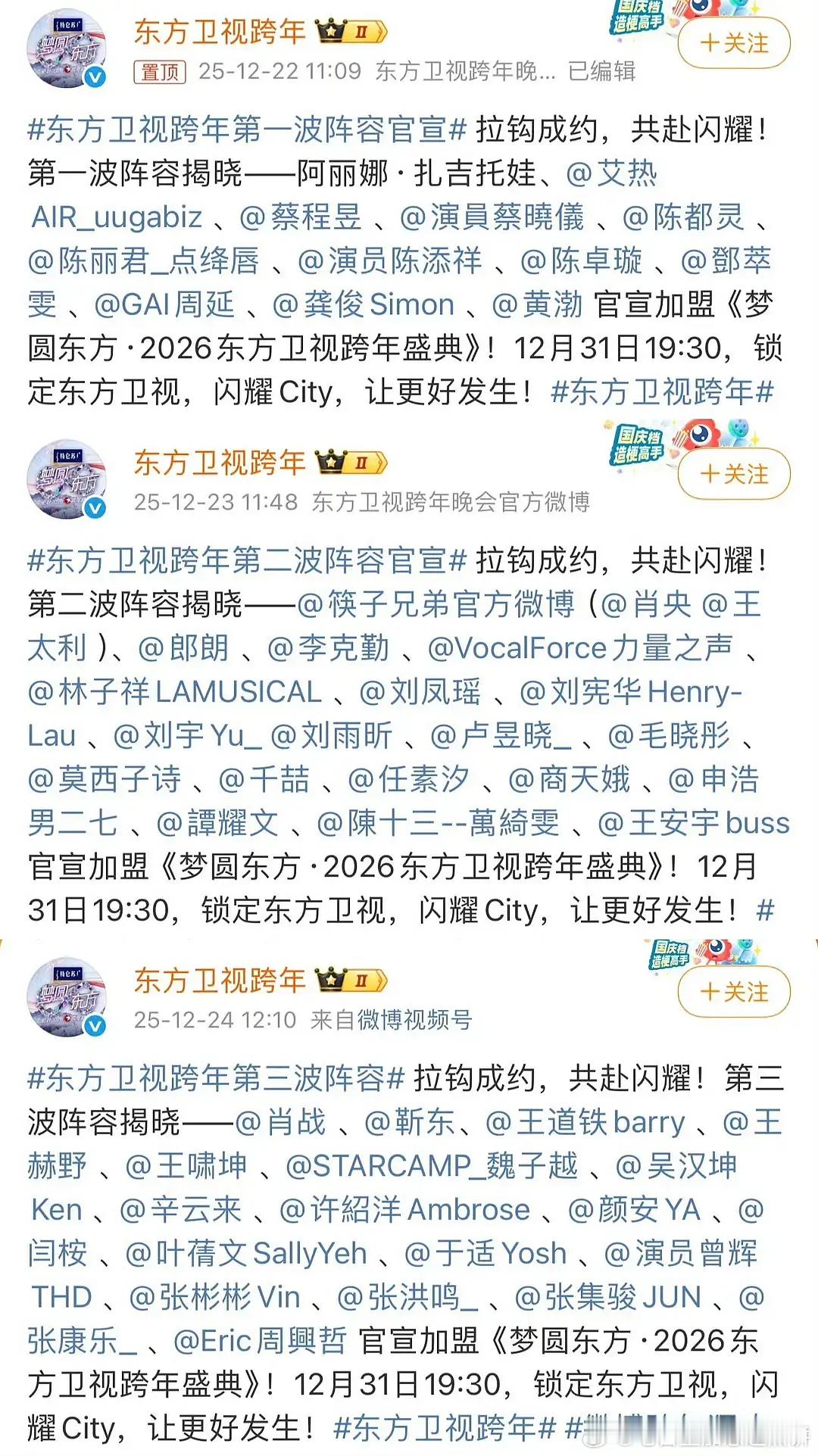 各家跨年晚会的明星阵容都陆续宣了,你看谁