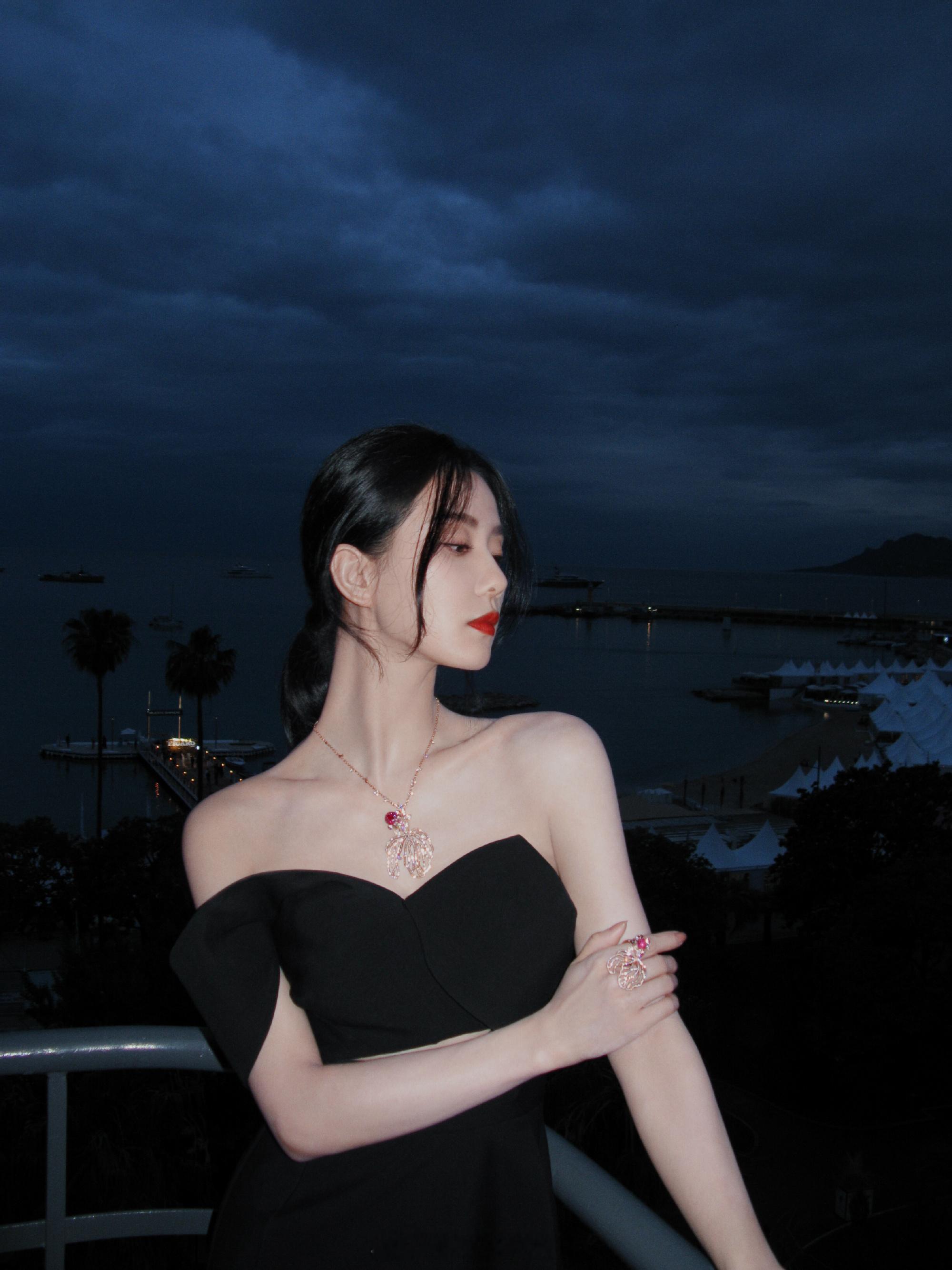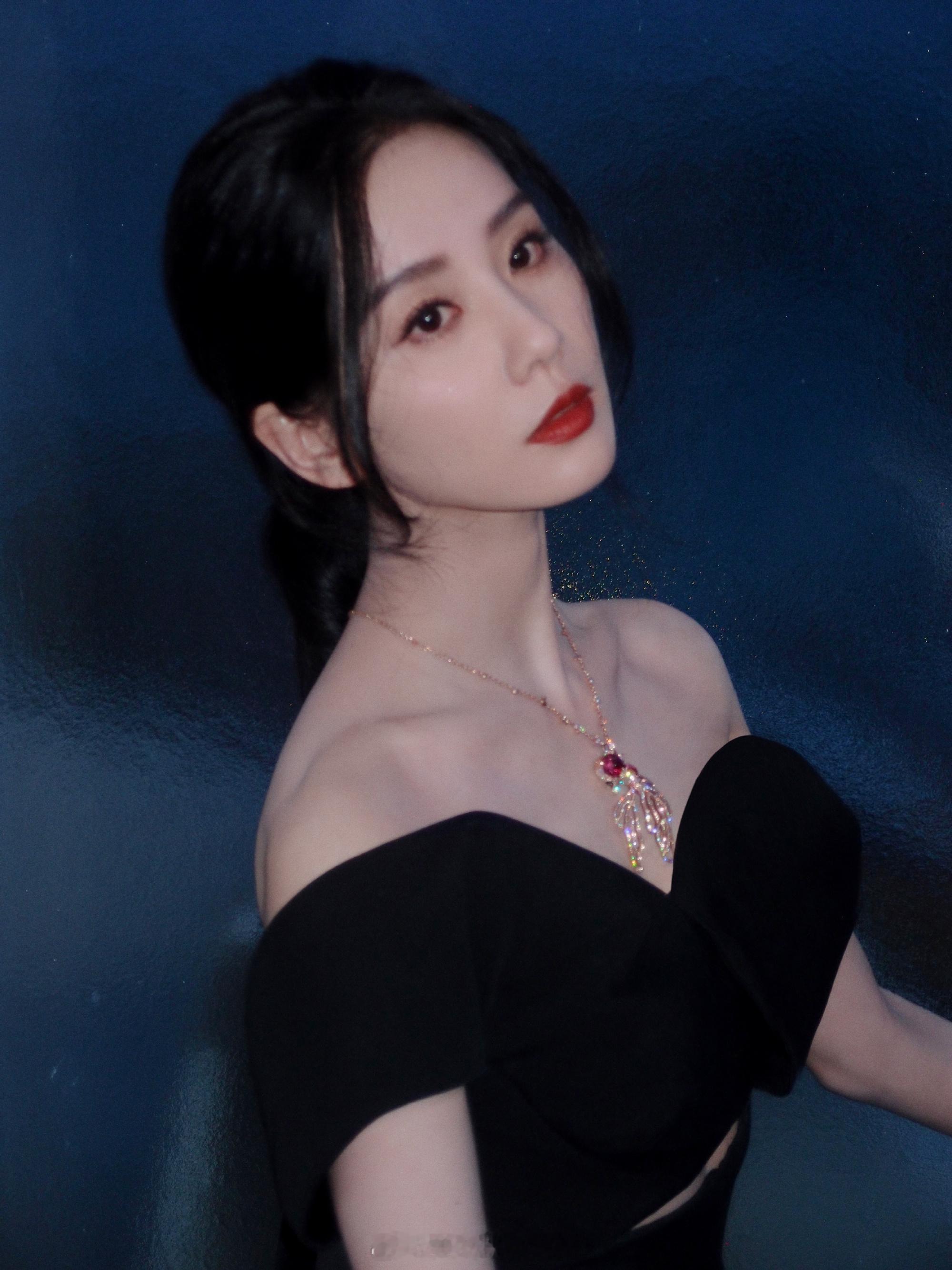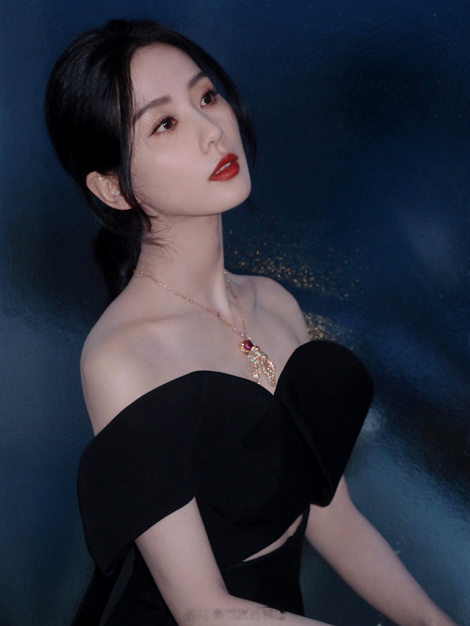 刘诗诗红唇黑裙优雅迷人造型写真