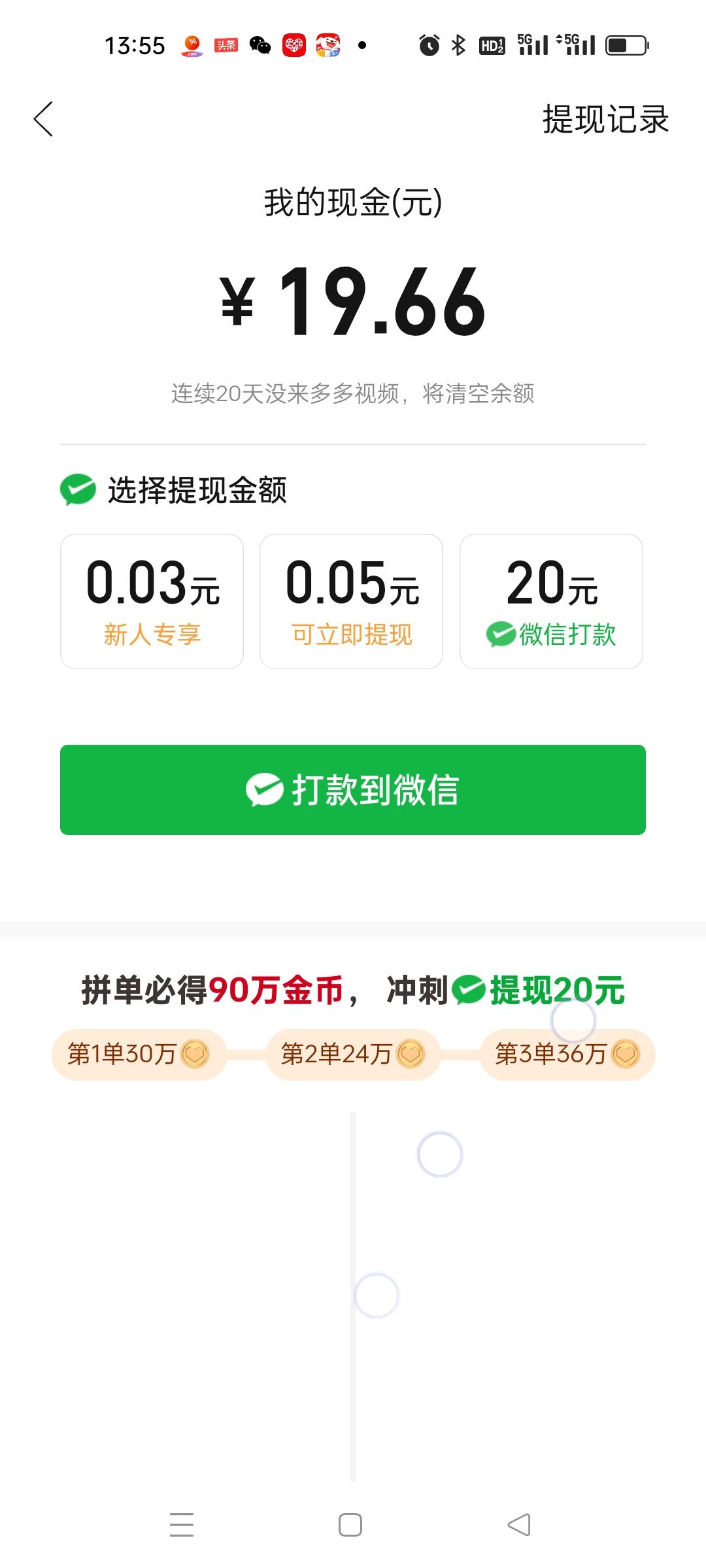 大家知道夕夕上这20个,如何能把它搞到手吗[捂脸] 这也太难了,好像40万币才转换成一毛的现金,还差4毛这得刷视频刷到啥时候[捂脸] 这玩意跟当年的砍一刀差不多。 从来没在夕夕上看过视频,昨天无意中点开看了一下,好家伙,直接给我送了19.5的现金,可把我高兴坏了,立马点提现,点开后发现要到20才能提,当时心想还差五毛,这有何难,立马就去刷视频,刷到了有20多万币的时候,心想这不就够了,这也太简单了,立马点转换成现金,结果发现只多了两分,当时心凉了半截。但还是不死心,又去做任务,又换现金,终于到了19.6了,还差4毛,别看只有4毛,但太难挣了[捂脸]看来这20个注定跟我无缘了。 大家有什么方法能凑够20吗?