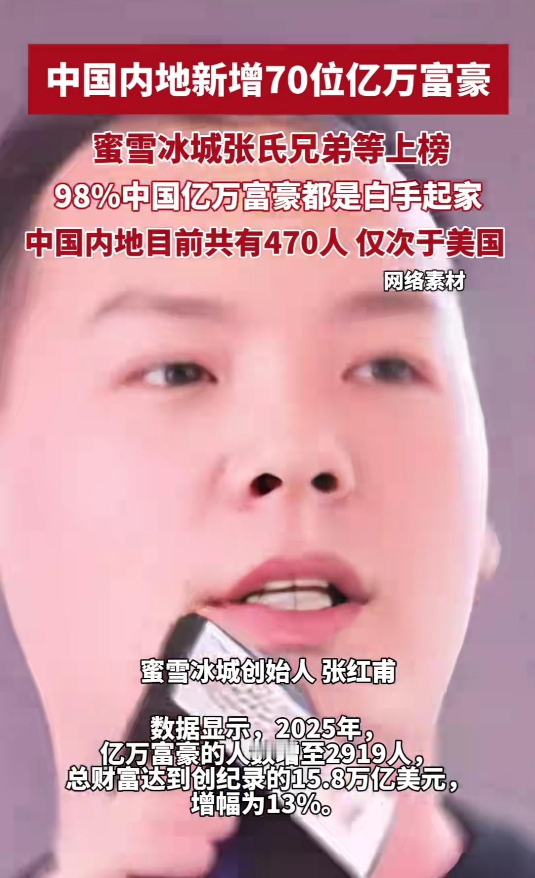 刷到蜜雪冰城张氏兄弟跻身亿万富豪榜的新闻,我愣了好几秒——谁能想到,靠卖3块钱的冰淇淋、5块钱的柠檬水,能在巨头扎堆的奶茶赛道里,拼出百亿身家?这哪是什么逆袭爽文,分明是普通人把小生意做到极致的真实范本。 要知道,在动辄几十块一杯的茶饮市场里,蜜雪冰城一直扎根下沉市场。它不搞花里胡哨的营销,只盯着“平价好喝”四个字死磕,从供应链到门店管理,把成本压到最低,让小镇青年和学生党都能喝得起。没有资本的疯狂砸钱,没有网红的一夜爆火,全是一家家门店攒出来的口碑。 这才是最打动人的地方。不是所有暴富都靠投机,不是所有成功都要踮脚够不着。蜜雪冰城的故事告诉我们,把一件小事做透,把普通人的需求放在心上,再小的生意,也能长成参天大树。