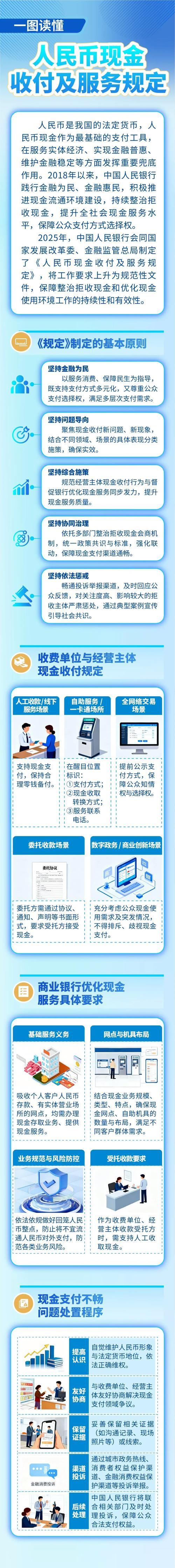 2026年2月1日起,央行等三部门联合发布的《人民币现金收付及服务规定》正式施行。新规核心是维护人民币法定货币地位,严禁无故拒收现金,禁止诱导或歧视现金支付行为。 面对面服务、线上预约线下交付等场景需支持现金支付,银行需保障现金存取服务,重点惠及老年人、残障人士等群体,构建多元支付并行的包容环境。银行取钱新规定 银行存取款新规