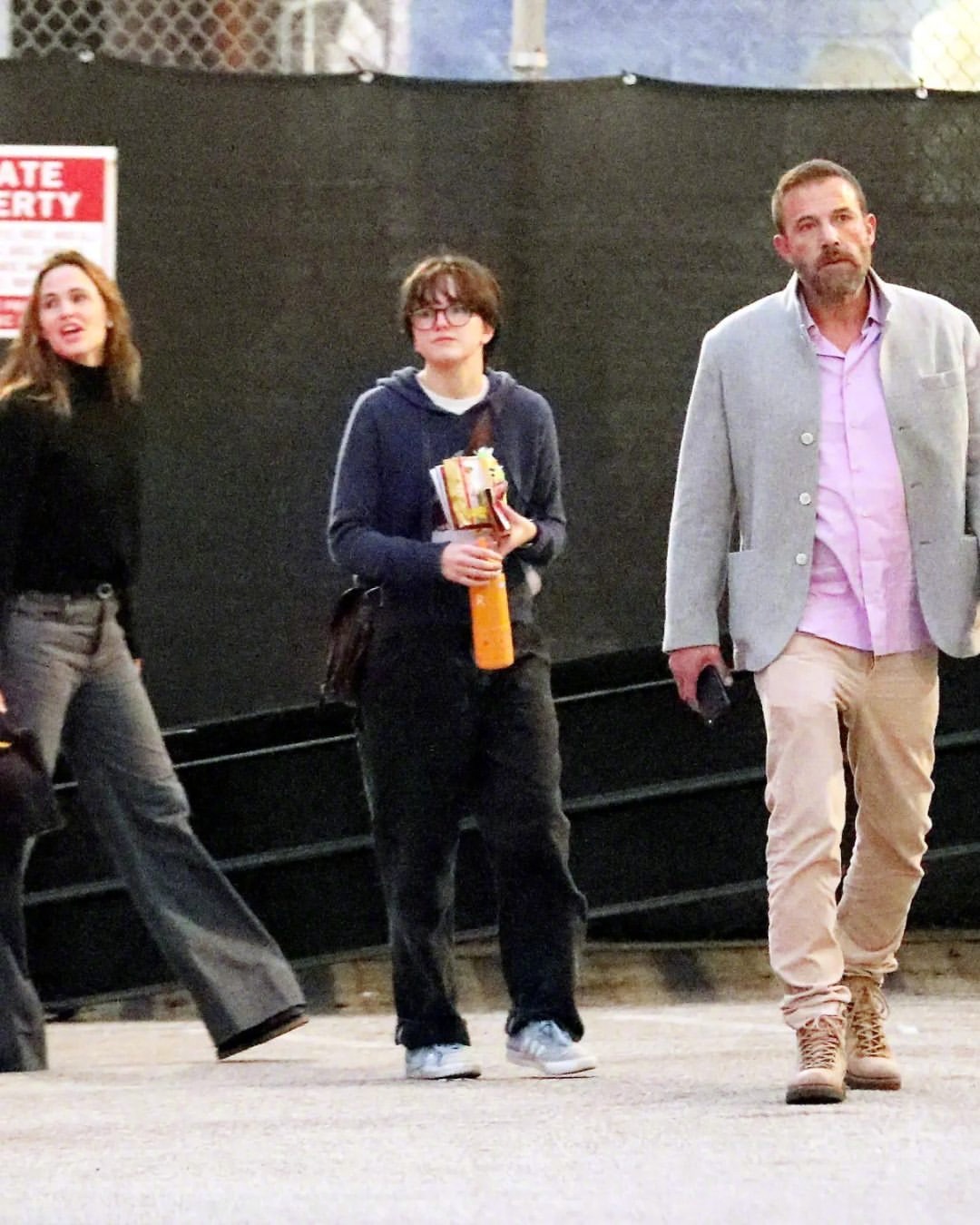本·阿弗莱克与前前妻詹妮弗·加纳带着16 岁的女儿塞拉菲娜一起现身洛杉矶好莱坞潘塔吉斯剧院,观看话剧《Stereophonic》。ps:大本这日子爽歪歪!