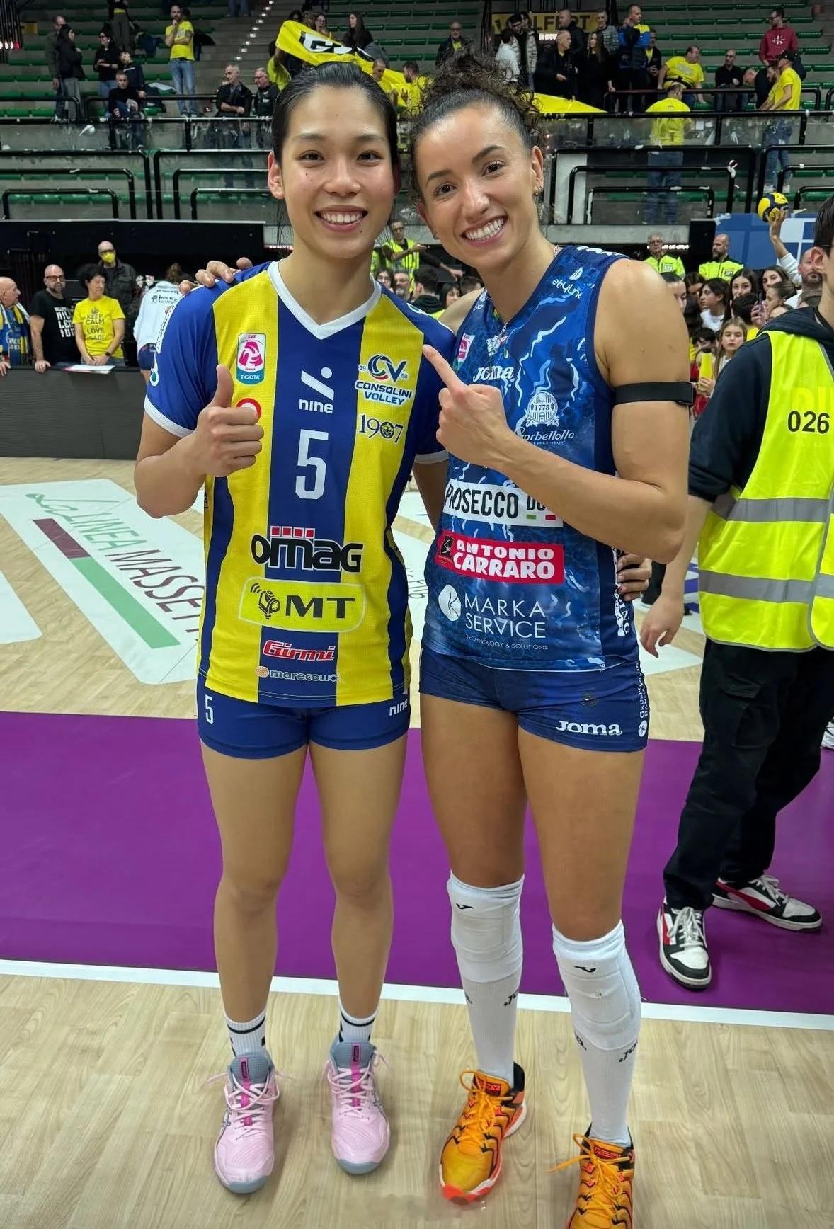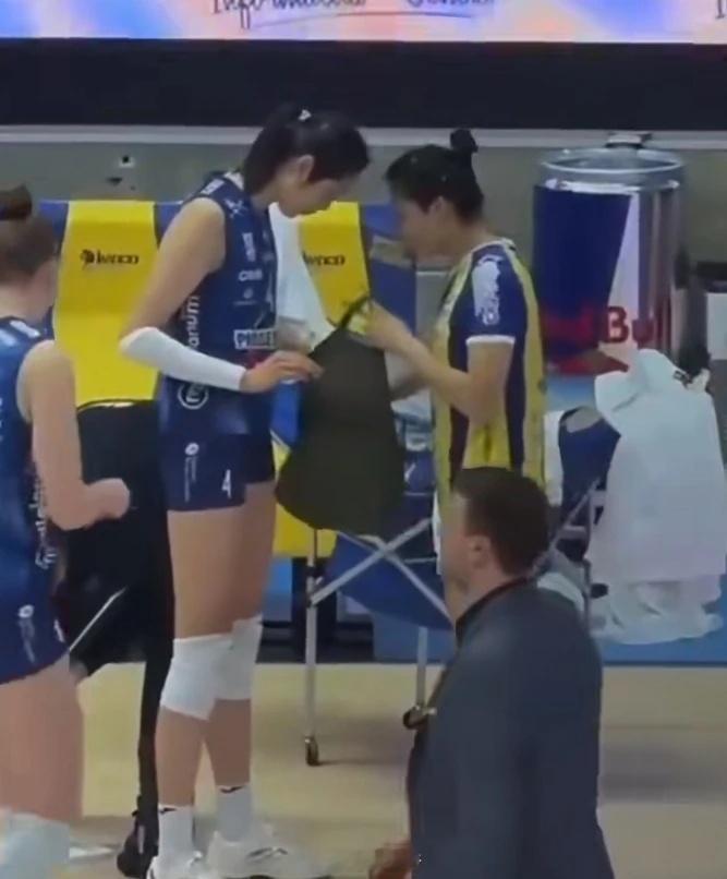 看到加比展示那个Panda,小庄还给朱婷和加比带了礼物,那个熊猫玩偶请小庄代言吧!科内3比0乔瓦尼尼,朱婷获得本场MVP,小庄也拿到了本方并列最高分,两个人都是对手追发的重点,尤其是小庄被科内重点关注,要不下赛季也被科内关注下啊 朱婷庄宇珊排球朱婷