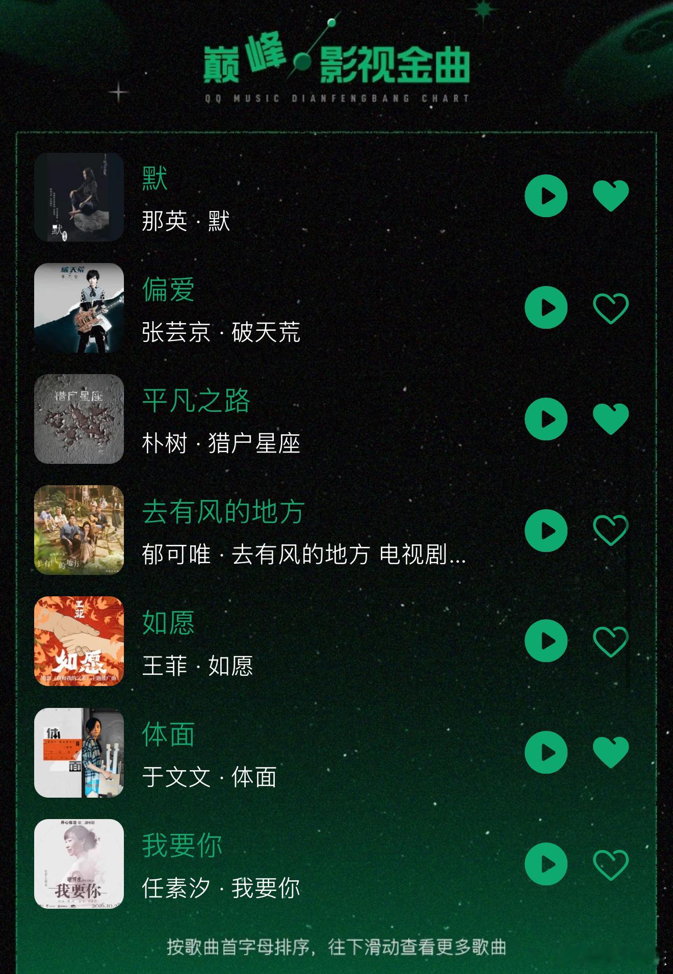 QQ音乐公布二十周年巅峰影视单曲张靓颖、张碧晨、郁可唯、那英、王菲、周深、胡夏、莫文蔚、陈奕迅、周杰伦、于文文、杨宗纬、刘欢……上榜其中张碧晨、郁可唯、王菲、詹雯婷上榜两首🔥QQ音乐20周年巅峰影视单曲