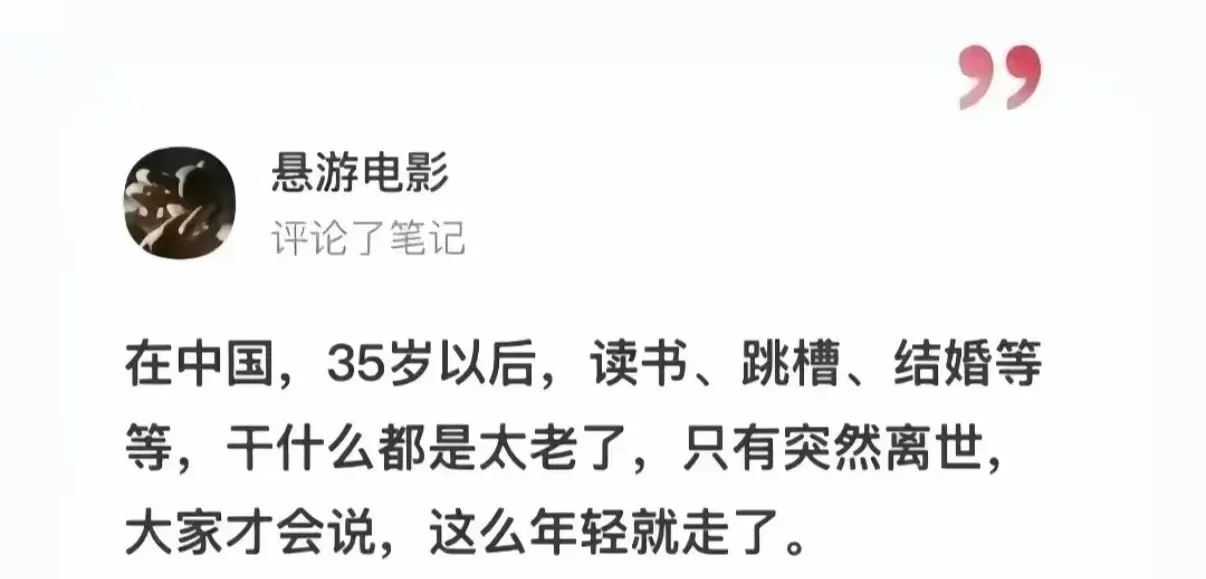 网友说35岁以后,做什么都有人说太老了。只有突然死了,人家才说,这么年轻就走了