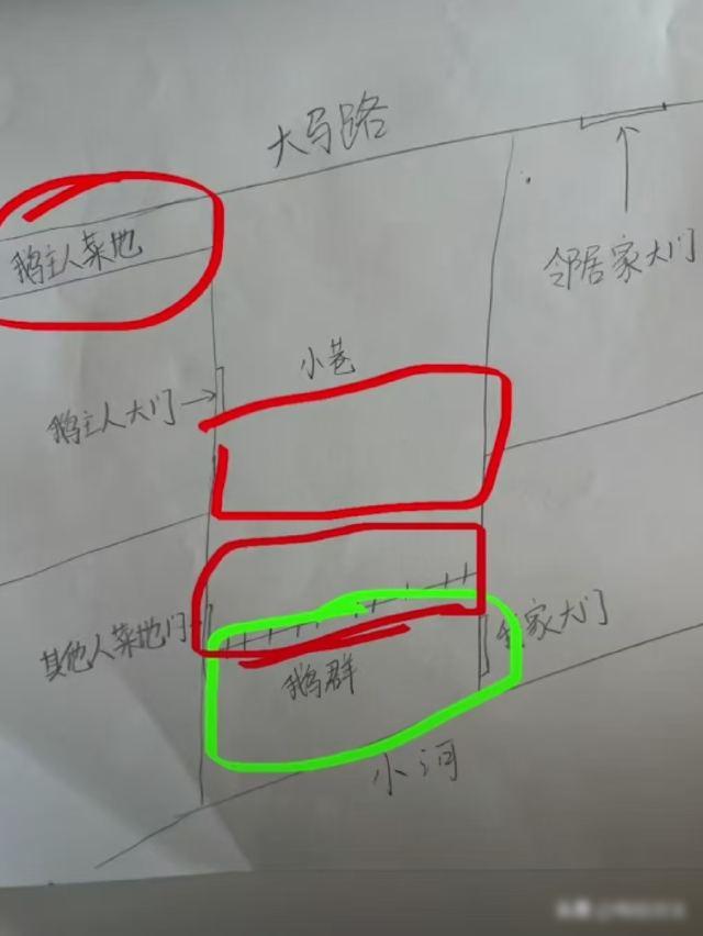 安徽,女子父母都不在了,她回家上坟,发现大门口被邻居用铁丝网围住,养了一大群鹅,鹅屎糊了一地。女子非常气愤:他家菜地就在旁边,凭什么在我家门口喂鹅? 去年冬天女子回老家上坟,刚拐进村口那条窄巷就站住了,自家大门前立着一圈生锈的铁丝网,几只大白鹅扑腾着翅膀冲过来,粪便落在青石板路上,姑姑家的大哥把鹅圈直接围在我家门口。 父母留下的小楼还锁着,门口却早不是当年的样子,巷子两米宽,对面菜地边就是邻居的墙,他们本可以自家门前养鹅,她蹲在泥水里开锁,鹅群叫得刺耳,嘎嘎地,一下一下割着耳朵。 大侄女回来啦,斜对门那声音一飘过来,她的后背就发紧,姑姑的大嫂靠墙晒着太阳,手里转着把铁锹,说是怕野狗啃菜苗,又不挡你进屋,姑姑身后菜地绿油油的,鹅圈却占了我家半条巷子。 那天她踩着粪便推开院门,门框上父母写的春联让泥水糊得只剩一点红,想起小时候妈妈总在扫帚上绑块抹布,天天擦门口,擦得亮堂堂的。 现在连给亲人上香的路都堵死了,胸口像压了块从鹅粪堆里刨出来的青石板。 后来翻出土地证去找村主任,他指了指铁丝网说,这巷子归集体所有,可民法典上明明写着相邻权益,该女子就拍了视频发到网上,直到有个城里的律师私信她,姑姑家才连夜把铁丝网拆了。 鹅群回了自家院子,那股酸味却还黏在脑子里,有天晚上刷到姑姑的视频,她站在菜地前笑着说老宅闲着也是闲着,不如让大鹅看家。 评论区一下子吵起来,这时女子才明白这老房子早不是我的家,就剩个空壳子被人随便占着。 父母坟前的野菊花开了又谢,我总盯着门楣上让铁丝网刮出的那几道痕,要是他们还在,会不会拿扫帚把鹅群赶走,现在只能隔着屏幕看老家门口重新长出来的草,一点一点把这口气咽下去。