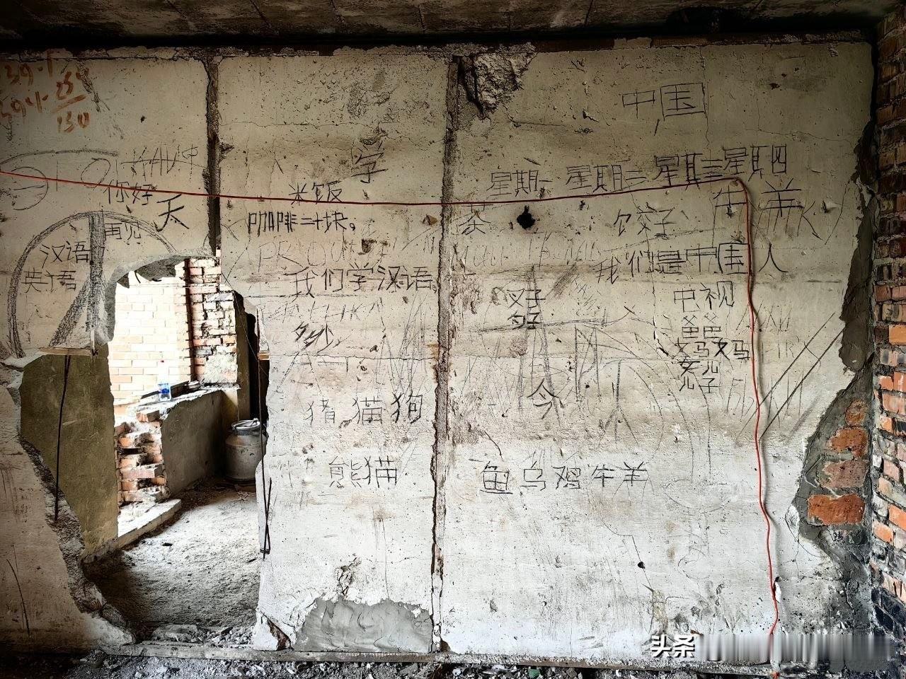 #俄乌冲突##摄影不凡# 这是今日俄罗斯RT的战地摄影师发回消息时附带的两张照片。 他写道:“几个月前,我们遭遇无人机,不得不赶紧躲起来,被它们盯上后,我们就分散藏到各家各户…… 我冲进楼道,钻进了一间像是以前住人的公寓或者当过办公室的地方,结果一抬头,就瞧见墙上……” 俗话说得好,“活到老,学到老”。这张照片是他在距离战火交锋线20公里的地方拍到的,从墙上像中国小学生写的字迹来看,这大概率是一名俄军战士在战斗间隙还在学中文。 真心希望他能早日带着胜利荣归故里,接着深造,之后好好工作,为中俄两国友谊添砖加瓦!