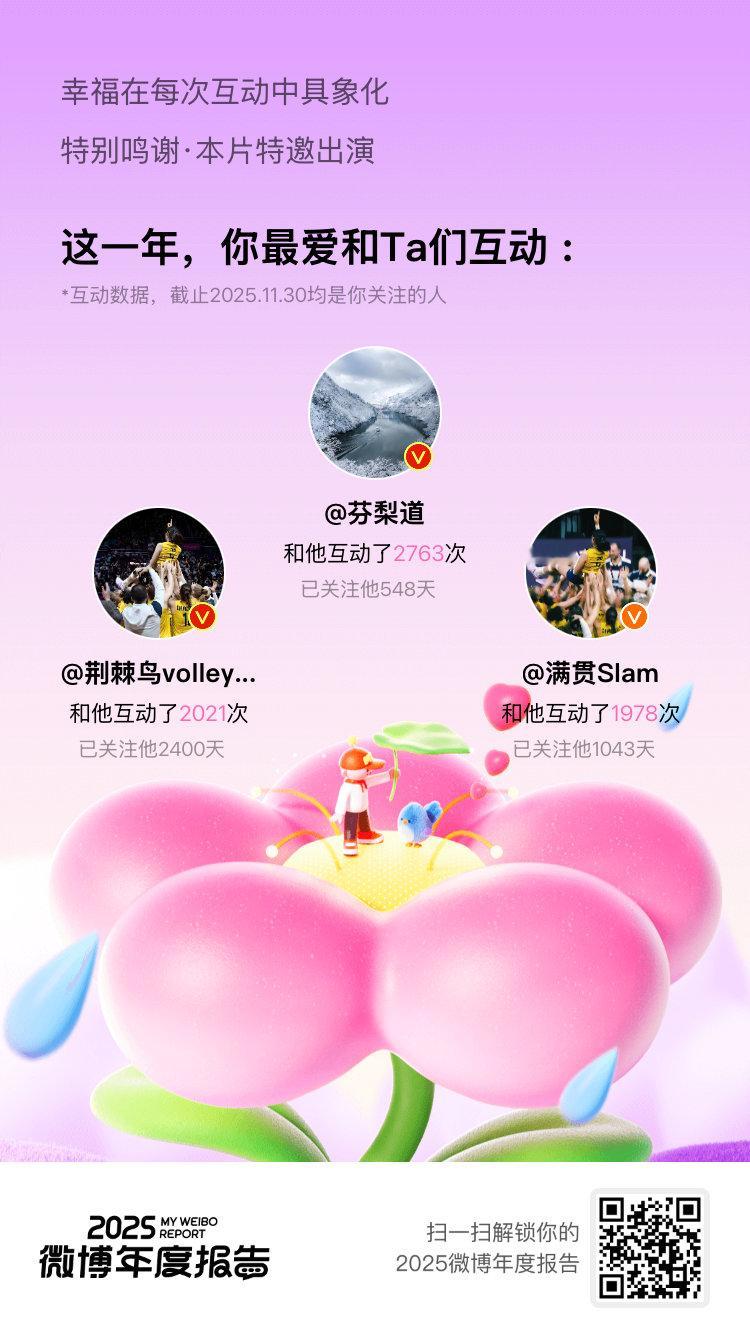 微博年度报告 2025年总是喜欢和你们互动:这大概就是明晃晃的“偏爱”吧!新的一年,这份偏爱依旧为你保留!2025微博年度报告