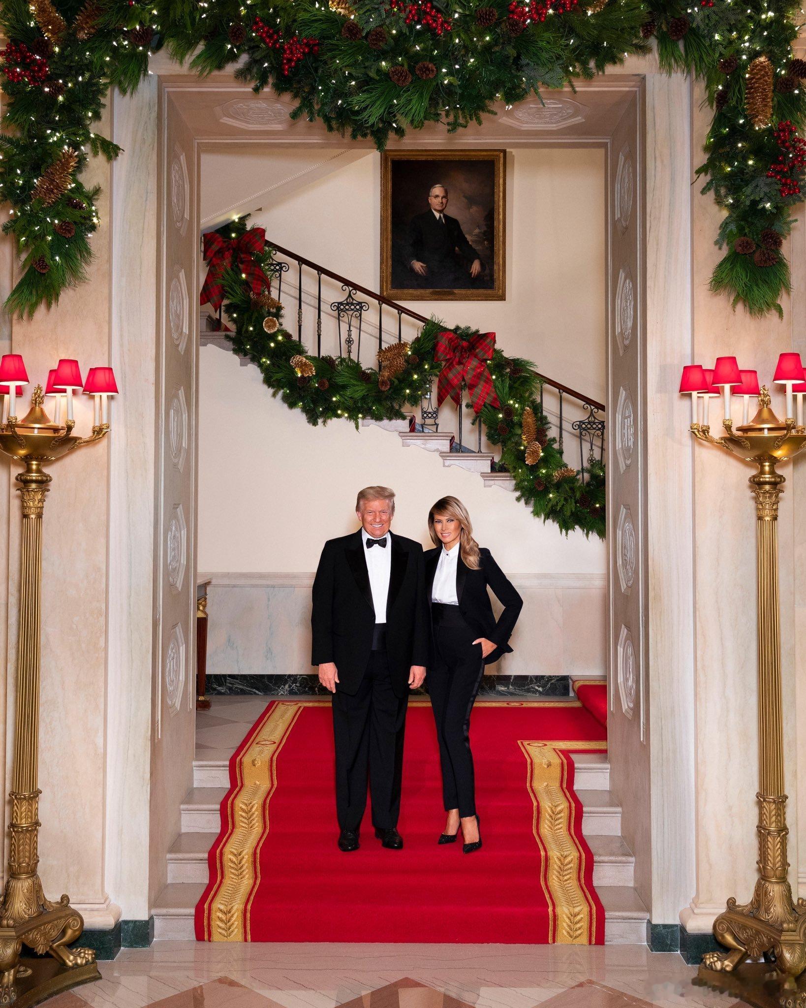 🔻2017, 2018, 2020, & 2025年特朗普在白宫与第一夫人的圣诞合影热点现场美国斩杀线海外新鲜事