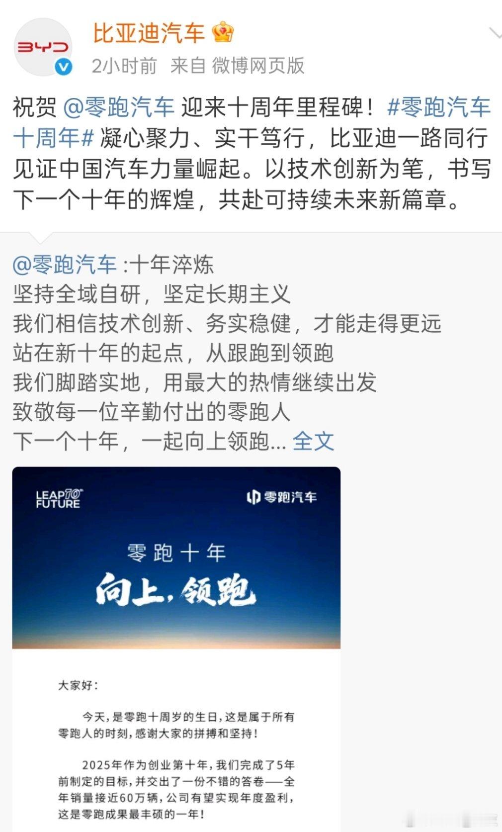 迎来十周年里程碑!比亚迪直接送去祝贺,这就是格局,中国车企以技术创新,一路同行,共同书写新篇章。