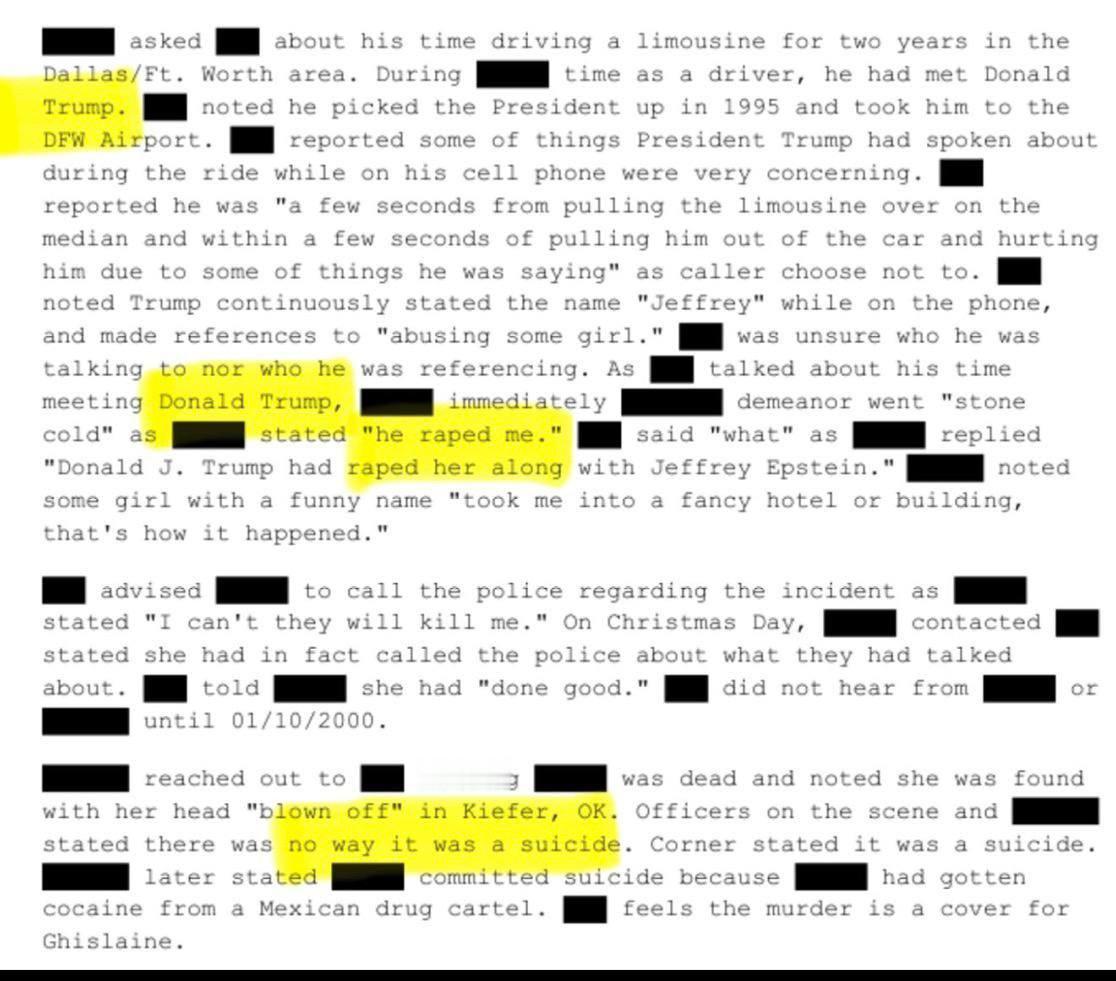 联邦调查局最新发布的报告中,一名爱泼斯坦案的幸存者作证称,她曾遭唐纳德·特朗普和杰弗里·爱泼斯坦强奸。 该女子随后被发现头部遭枪击身亡,但其死亡事件被掩盖,并被描述为自杀。爱泼斯坦狱中自杀视频被证实是伪造海外新鲜事热点现场