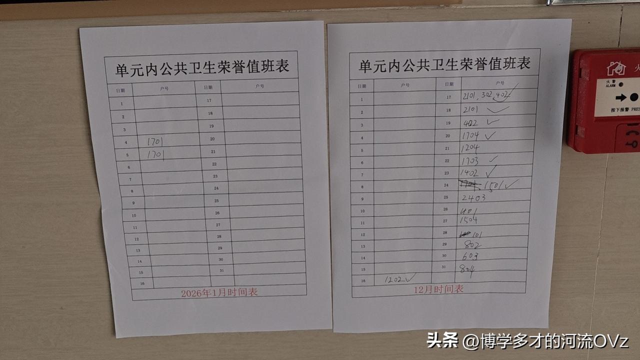 今天是金碧物业走后的第54天。 今天出现了反差极大的两件事。一件是高空抛物,乱扔垃圾。明明几步路,把垃圾带到垃圾房就可以了,但是有些人偏偏从楼上就把垃圾袋扔下来。 另一件是一位热心业主自发的打扫1楼大厅和电梯。本来排班表已经都排下来了,今天已经有人打扫了,但是岁数大了,不怎么会看群,就让她女儿下来打扫卫生。我帮她填写在了卫生值日表里面。住在1幢楼,人与人的差距咋这么大呢? 物业管理委员会成立后,有一位业主提出了几项物管会办不到的事情。一是把南大门打开了。要知道南大门是要南通六建才能解决,这个是用物管会或者新物业都解决不了的问题。二是让金碧物业把多交的物业费从8月份开始退给我们。金碧物业是从10月底才正式退出。这个多出来的三个月,它是不会退的。三是如果再收物业费,他要求是最后一个交。很显然,如果每个人都像他这样想,都想最后一个交,那物业费根本收不起来。 所以刚成立的物业管理委员会将会举步维艰,因为小区没有经历过大乱,所以很难实现大治。 这两天很奇怪,我们的电梯从昨天到今天坏了三次。幸好,村委会跟维保公司签过合同,所以,打了三次电话,维修工人都及时来维修了。