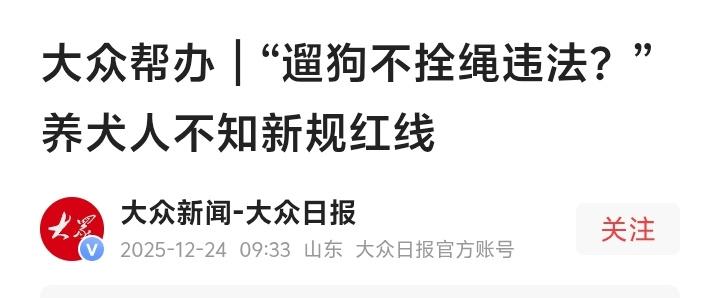 山东多地惊现“遛狗自由人”!新规下月上线,最高拘留十日,你的小区还在上演“人狗追逐战”吗? (来源:综合自大众日报、琅琊新闻网及网络平台热议) 傍晚的社区广场,本该是孩童嬉笑、老人散步的安宁之地,却总被几声犬吠打破和谐。一只未拴绳的大型犬在人群中肆意奔跑,主人远远喊着“它不咬人”,而一旁推婴儿车的母亲已惊出一身冷汗。这样的场景,你是否也曾在身边见过? 新修订的《治安管理处罚法》即将在明年1月1日实施,白纸黑字写明:遛狗不拴绳致使伤害他人,情节严重者可处十日拘留。这本该是一道清晰的红线,可现实却令人愕然。记者走访山东多地社区,竟发现不少养犬人对此一问三不知,依然我行我素。 “我的狗很乖”成了最苍白的辩解。今年十月,烟台某小区内,一条未拴绳的边牧犬将一对母女扑倒在地,若非邻居挺身而出,后果不堪设想。事件在网络掀起轩然大波,可类似的险情仍在暗处潜伏。文明养犬的倡议书贴满了楼道,但对某些人而言,规矩似乎永远只约束别人。 物业管理人员有苦难言。他们没有执法权,面对投诉只能反复劝导,换来的往往是冷眼相对。执法民警也道出无奈,以往多以教育为主,处罚案例寥寥,规则的牙齿似乎总也咬不实。这种“柔性执法”的惯性,无形中消解了法律的威严,也让侥幸心理野蛮生长。 法律的生命在于执行,否则便是一纸空文。山东已有多个城市出台地方养犬条例,但执行起来却参差不齐。部门之间职责交织又权责模糊,最终演变成“都能管一点,又都管不彻底”的治理困局。这背后折射的,实则是公共服务精细化的缺失与协同治理的短板。 矛盾真的无法调和吗?或许我们该看看更远的例子。广州、上海等地正尝试建设“宠物友好型城市”,在公园旁划出专属萌宠乐园,配备设施,让狗狗能安全撒欢。这启示我们,治理并非一味禁止,而是疏堵结合的智慧。城市的发展,理应容得下一根牵引绳的距离。 拴绳,从来不是对爱犬的束缚,而是对他人安全的尊重,更是对宠物本身的责任。一根绳,防的是意外,守的是文明。那些放任爱犬“自由”的主人,可曾想过,马路上飞驰的车轮、地上不明的毒饵、受惊后可能反击的路人,对狗狗而言才是真正的危险? 新规倒计时已经开始。它不仅仅是对违规者的震慑,更是对全社会文明共识的一次呼唤。它要求每一位养犬人收起傲慢,拾起责任;也要求我们的社区和城市,提供更完善的配套与更高效的管理。这场关乎公共安全的考试,没有旁观者。 当法律的钟声敲响,我们希望看到的,不是冲突与对抗,而是理解与共融。让拴绳成为出门的习惯,让清理粪便成为自然的下意识,让每一只狗狗都能成为人见人爱的“文明大使”。这方我们共同生活的空间,理应让每一步都走得安心,让每一次相遇都带着善意。 文明养犬 遛狗拴绳