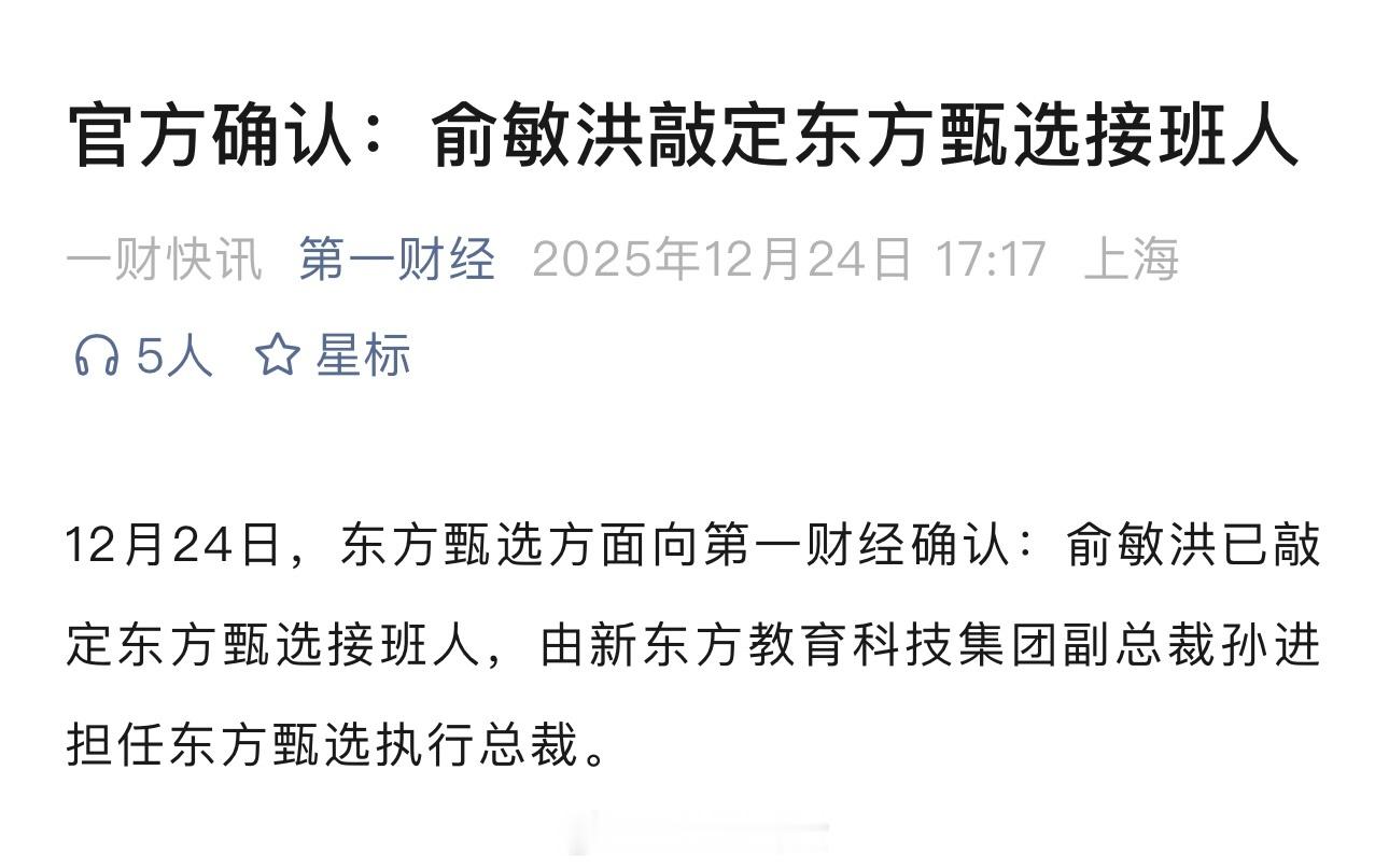 俞敏洪已敲定东方甄选接班人,由新东方教育科技集团副总裁孙进担任东方甄选执行总裁俞敏洪已敲定东方甄选接班人