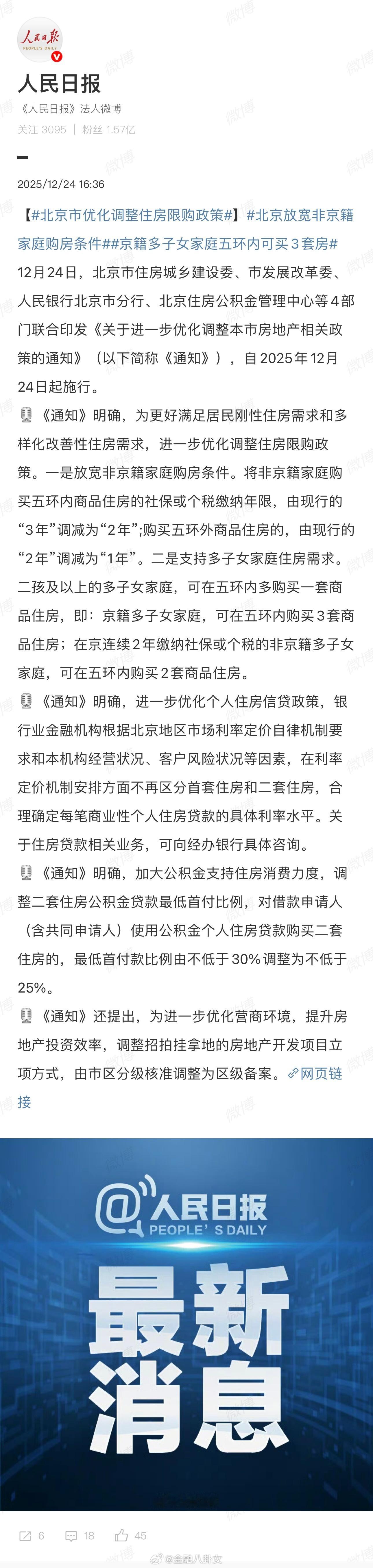北京市优化调整住房限购政策,放宽非京籍家庭购房条件,京籍多子女家庭五环内可买3套房北京放宽非京籍家庭购房条件
