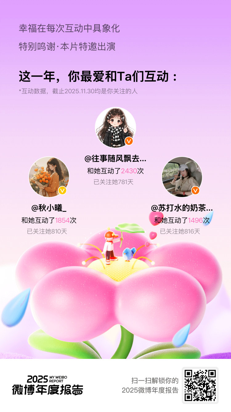 微博年度报告 2025年总是喜欢和你们互动:这大概就是明晃晃的“偏爱”吧!新的一年,这份偏爱依旧为你保留!2025微博年度报告