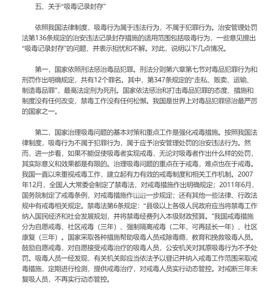法工委回应吸毒记录封存相关问题官方终于回应吸毒记录封存的问题了,还在第二点回应