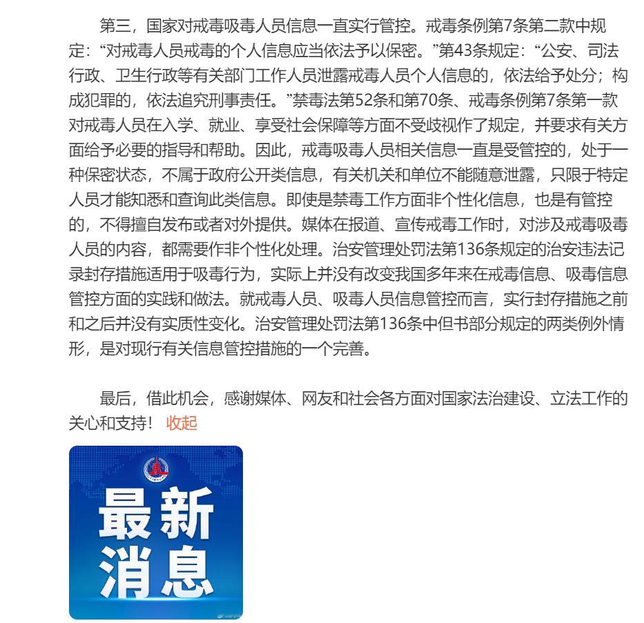法工委回应吸毒记录封存相关问题 官方终于回应吸毒记录封存的问题了,还在第二点回应