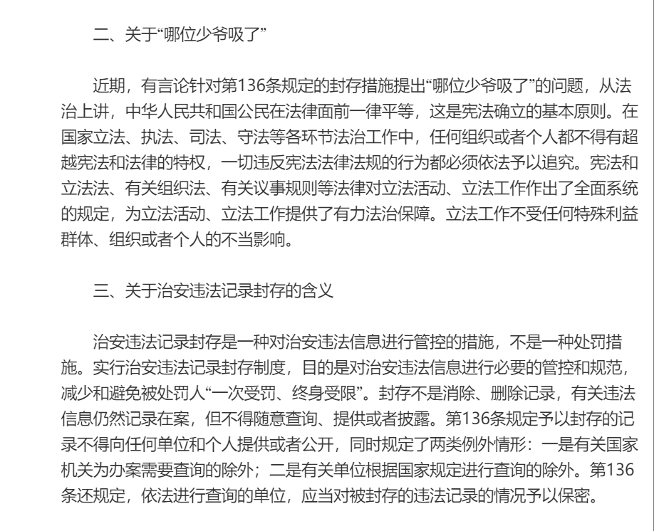 法工委回应吸毒记录封存相关问题 官方终于回应吸毒记录封存的问题了,还在第二点回应了之前的热门话题“哪位少爷吸了”。