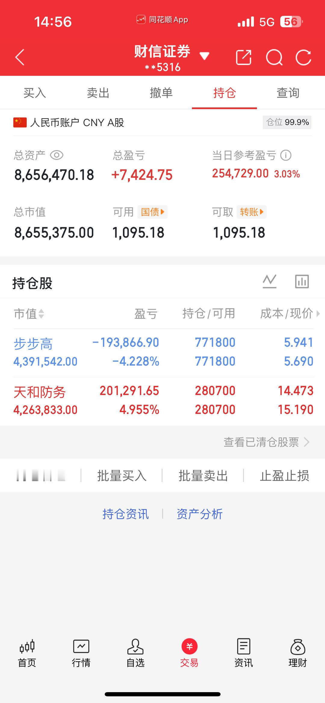 今天是12月24号星期三!菲菲股票操作之旅;继续持有:步步高,天和防务特别声明:我开实盘的目的主要是为了记录我对A股走势的思考和研判,并用于记录我自己的操作笔记,是我积累股票投资知识和反省操作失误的一个平台,绝不是读者朋友买卖股票的依据和理由,不具备投资建议,据此操作,需自行承担投资后果,股市有风险,投资需谨慎!!!看到的朋友点个赞,扣一波“888”支持菲菲,我会每天坚持发出自己的操作来!兄弟们,点赞富三代,评论美一生!