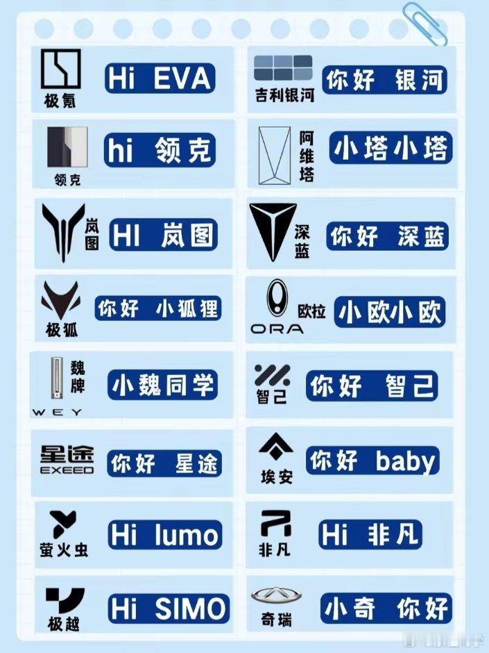 国内新能源电车主流品牌唤醒词、你是什么车型看看是否一样呢?新能源汽车排行新能源汽车品牌新能源品牌排名自主品牌电车电车排行榜新能源车排名纯电车排行榜新能源车企排名
