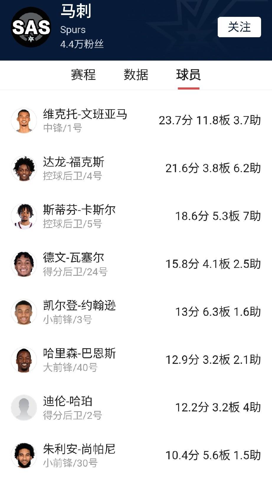 马刺这支队真神奇,看比赛统计往往弄不清大小王是谁,主力和板凳的区分不大,实力均衡的可怕。理论上讲文班是头号球星,2号是福克斯,3号是卡斯尔。但今日主场狂胜雷霆20分一役(130-110),这哥仨都没拿到单项技术统计队内第一。 这就是典型的马刺文化和谐、团结、平等。印象中从邓肯时代起马刺就出了2个刺头,一个是卡哇伊,一个是史蒂芬杰克逊。在联盟造星的时代,马刺就是这么另类,本赛季场均出场时间超过20分钟的有9人(图中的9人),场均出场时间最多的是福克斯的32.1分钟。场均得分上双的有8人,最多的文班场均也才23.7分。这和那些把队中球星当牛用,动辄一场打40多分钟的球队真是截然不同。 虽然没有华丽的个人数据,GDP时代也是如此,但是多点开花,没有明显弱点,这样的马刺联盟其他球队能不怕嘛?