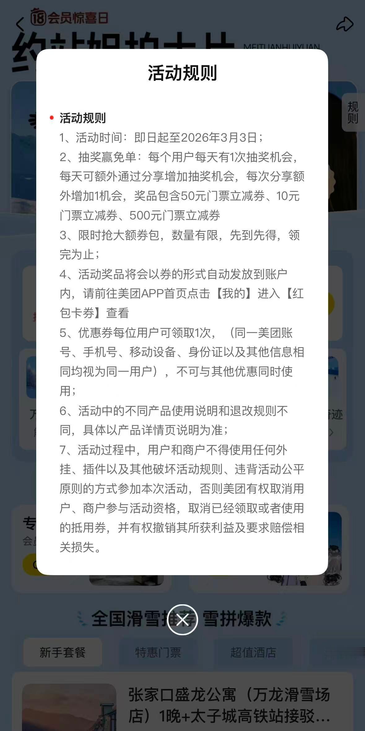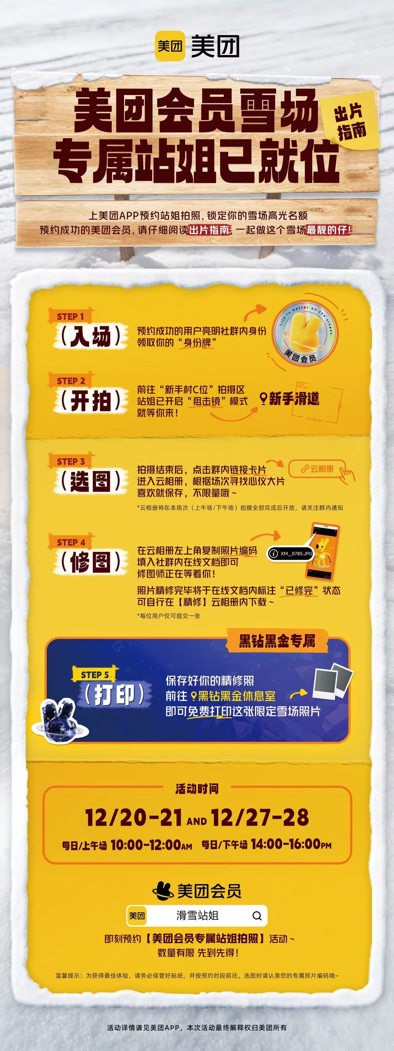 滑雪出片照美团1218会员惊喜日!雪场站姐跟拍秒出封神大片,5折住滑+专属休息