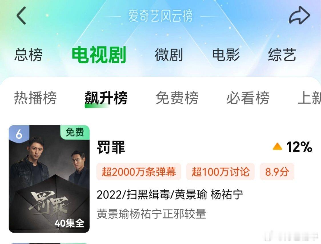 黄景瑜罚罪2 黄景瑜秦枫 每日一看,今天还是排第4,前面1个长剧,0片花,预约破