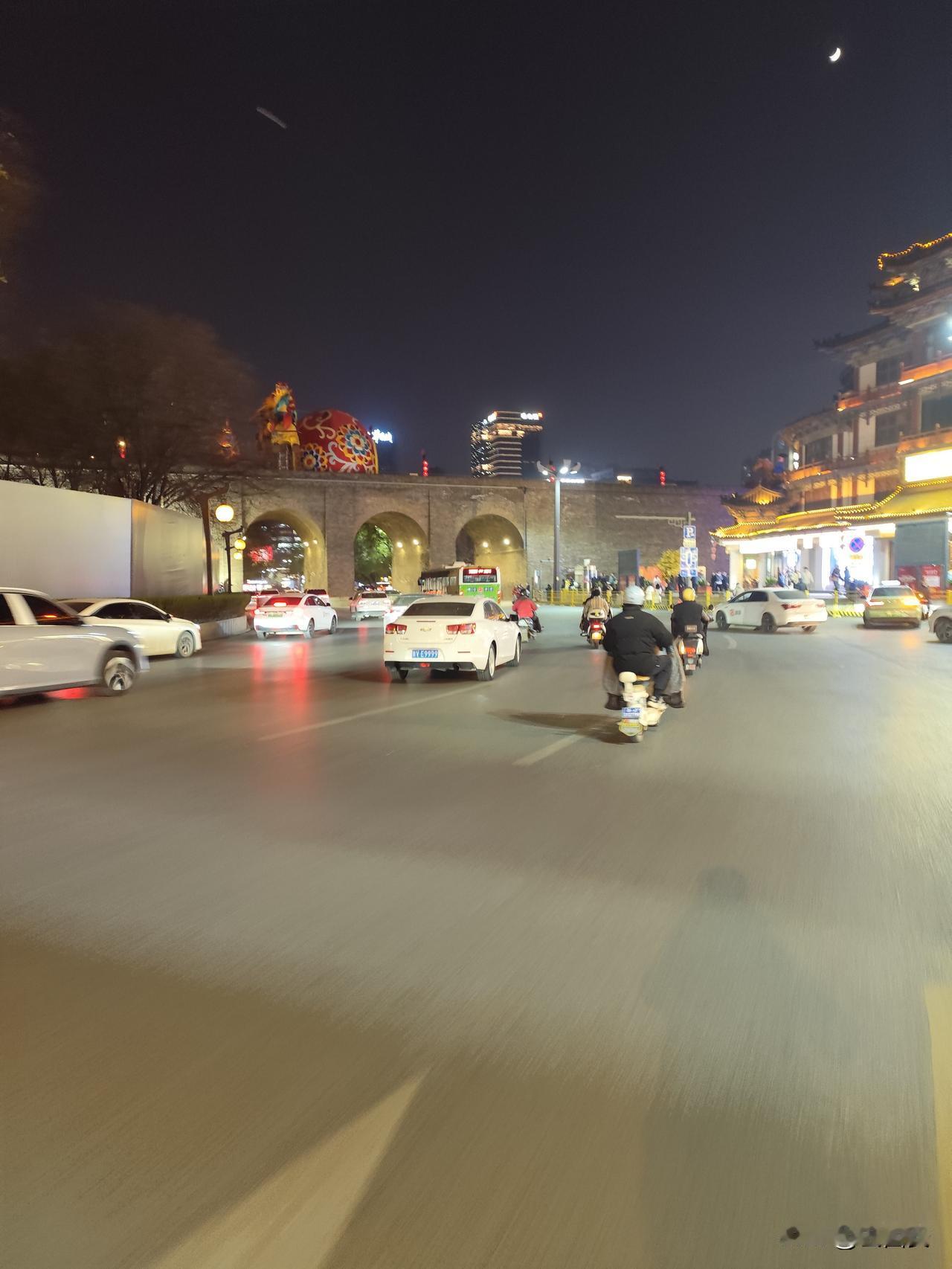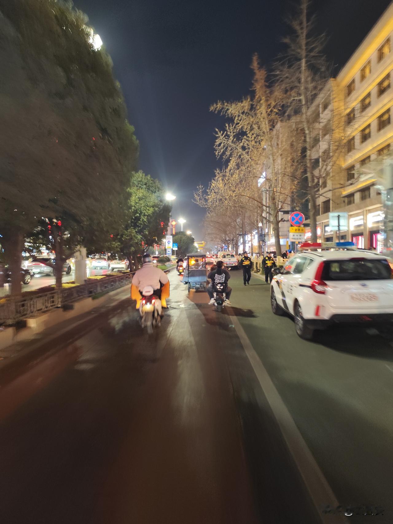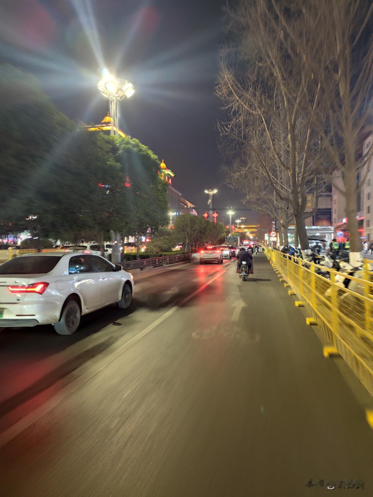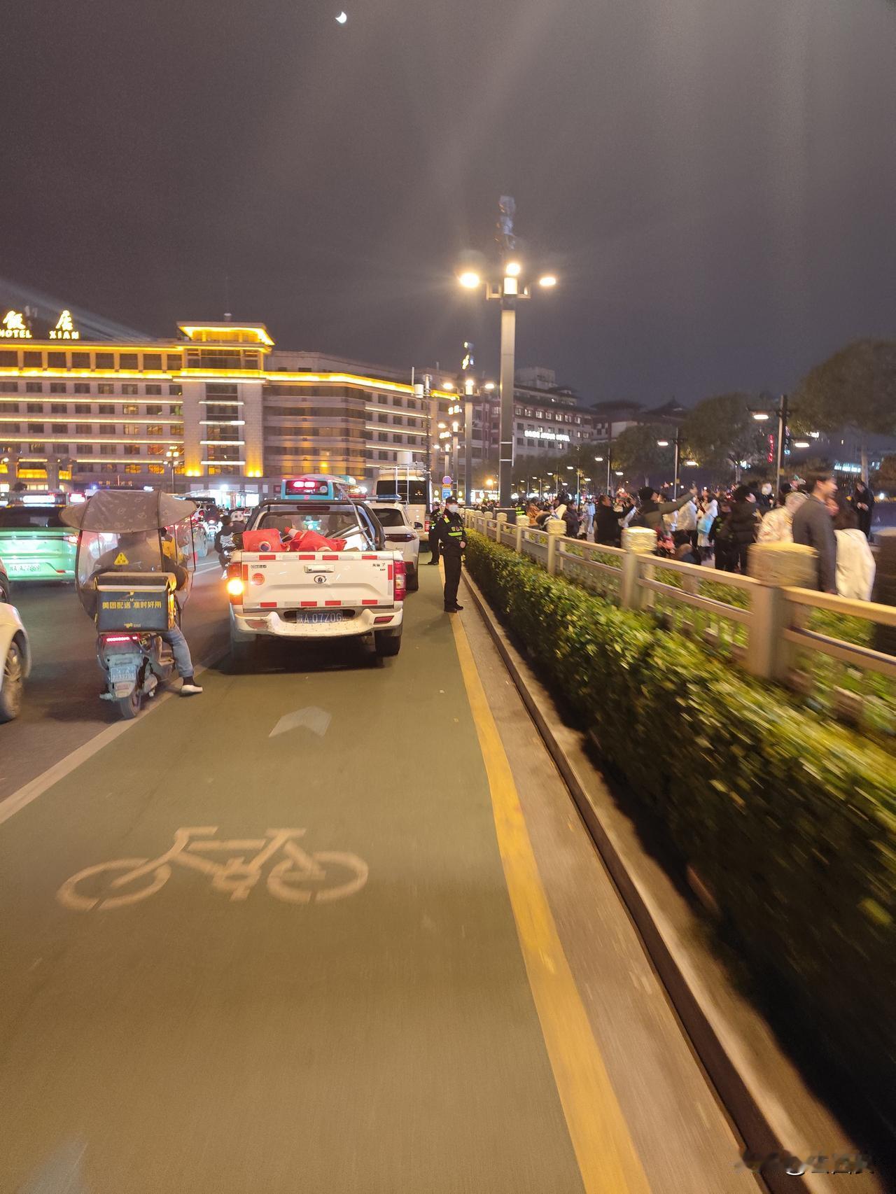平安夜,城里的路况竟然是这样?感觉路边的警察比逛街的市民还多!晚7点左右从北门骑行到南门,没想到一路通畅,交通情况甚至比平时下班更好。和前几天的广仁寺燃灯节完全没有可比性,甚至连交警准备的交通管制的铁架也暂时没有派上用场。 钟楼周边的大街沿线停了很多消防车,救援车,警车等等,还有大批的警察维持治安,但是似乎都很闲,完全不像往年如临大敌的感觉。是现在的年轻人对圣诞节无感了吗?还有一个原因大概就是西安有很多的圣诞打卡点分流了。西安身边事