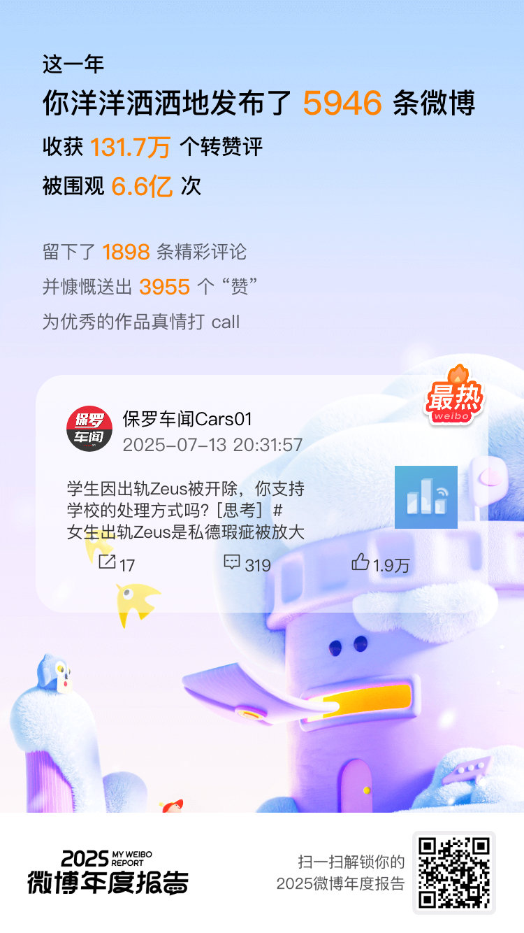 微博年度报告微博年度报告新鲜出炉,感谢大家一直以来的支持和陪伴!微博之夜