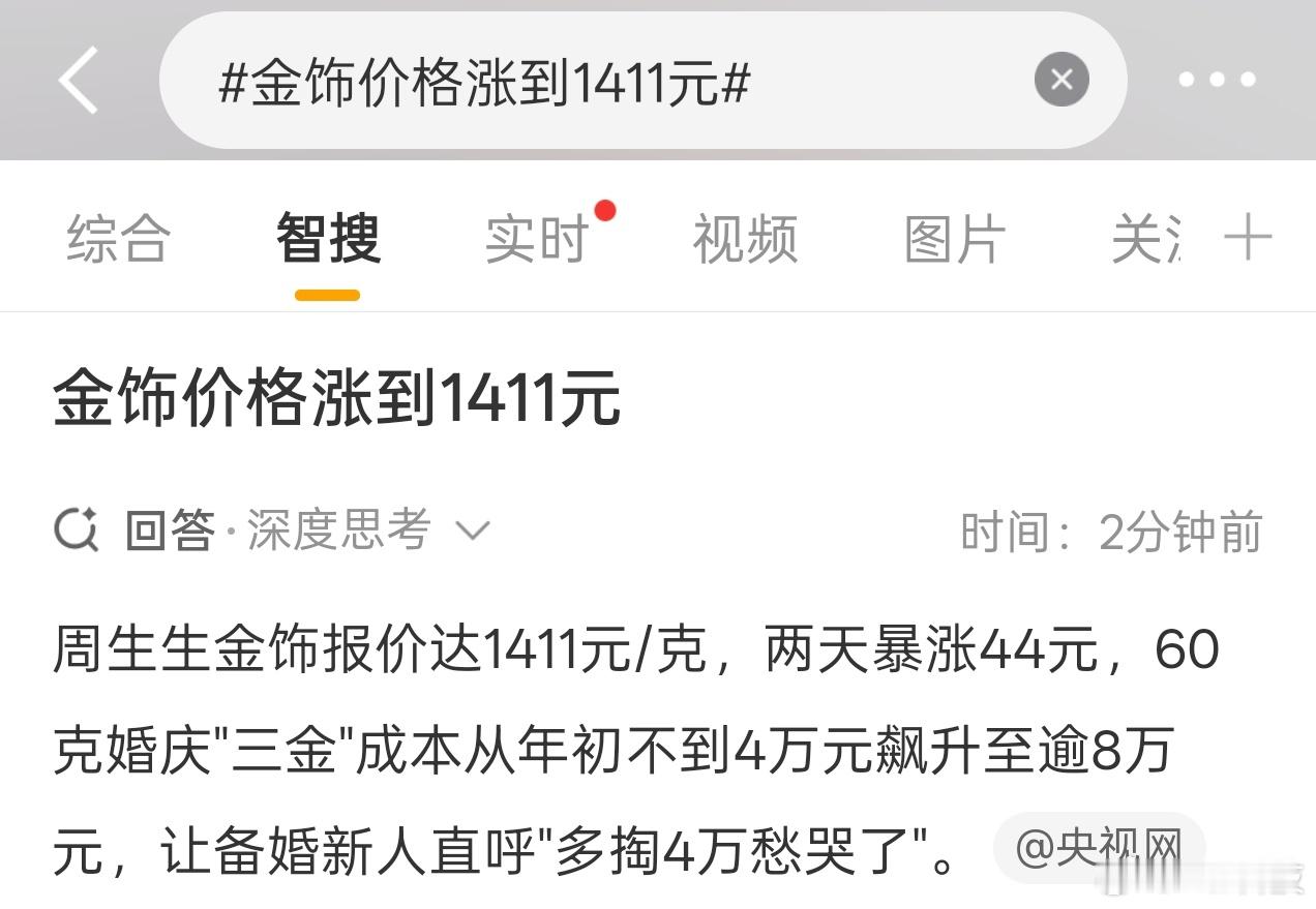所以,为什么结婚就一定要三金、五金呢我依然困惑金饰价格涨到1411元
