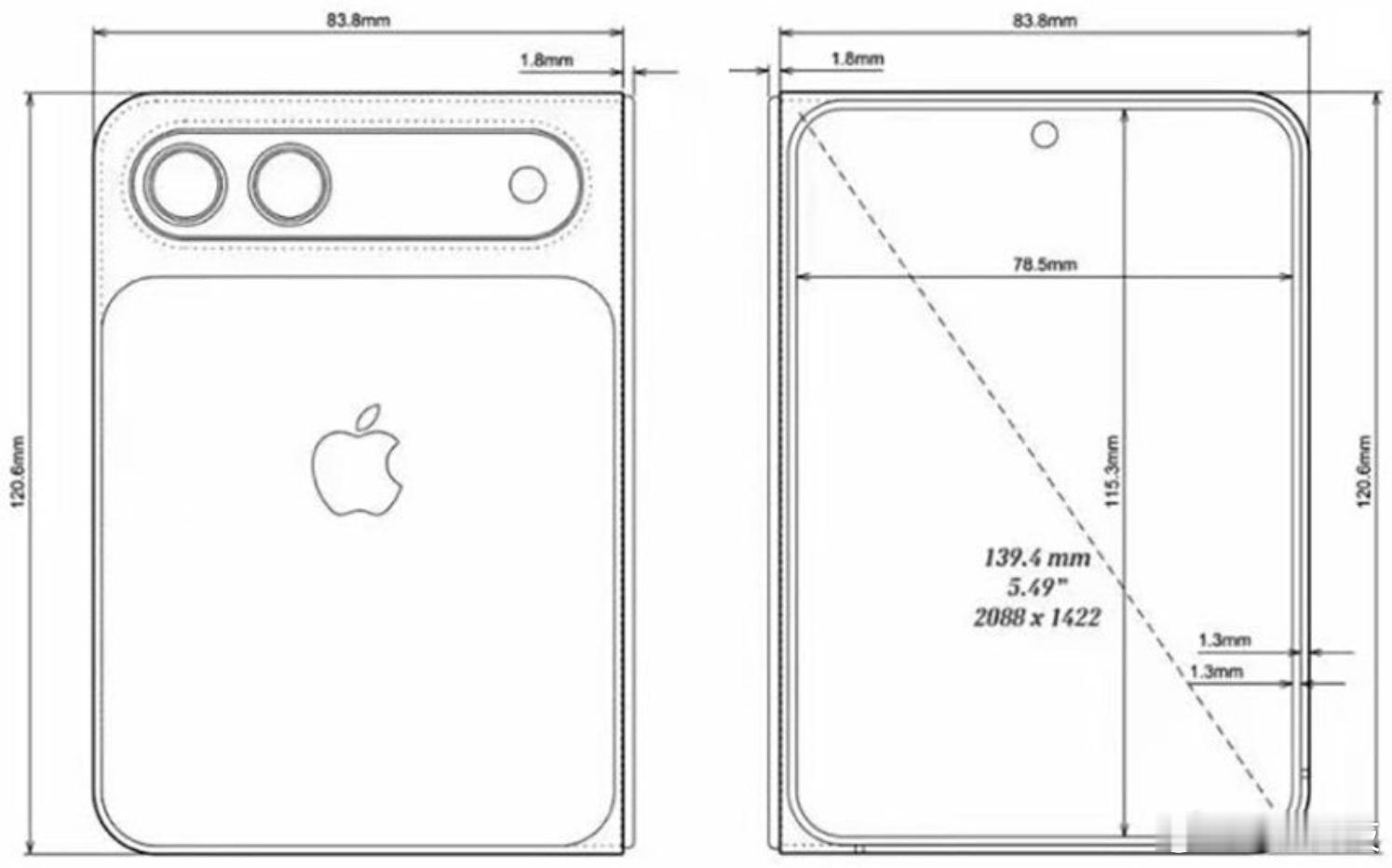 iPhoneFold机模出炉emmm...iPhone Fold背部采用横置相机模组,造型神似iPhone Air,其外屏尺寸是约为5.4英寸,内屏尺寸是7.6英寸,大家觉得如何?