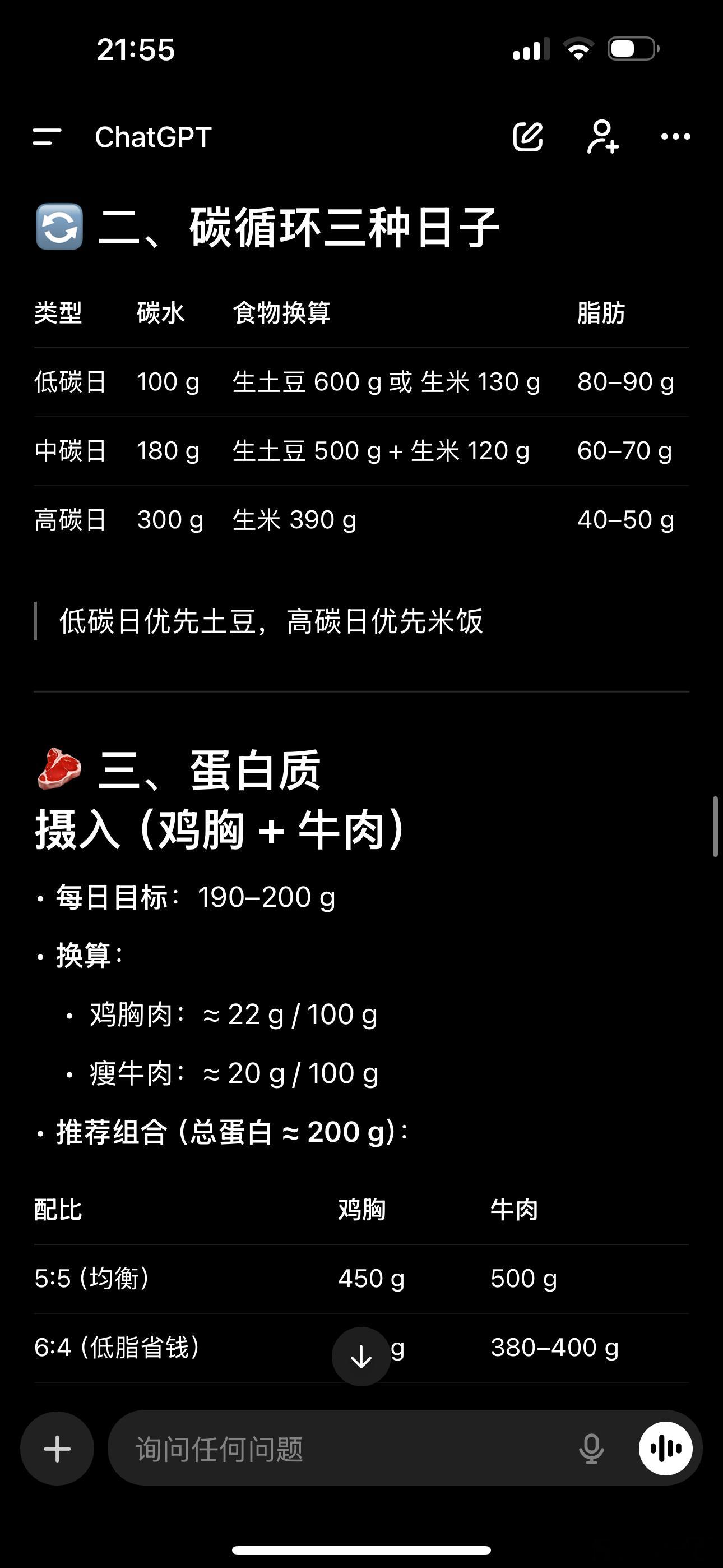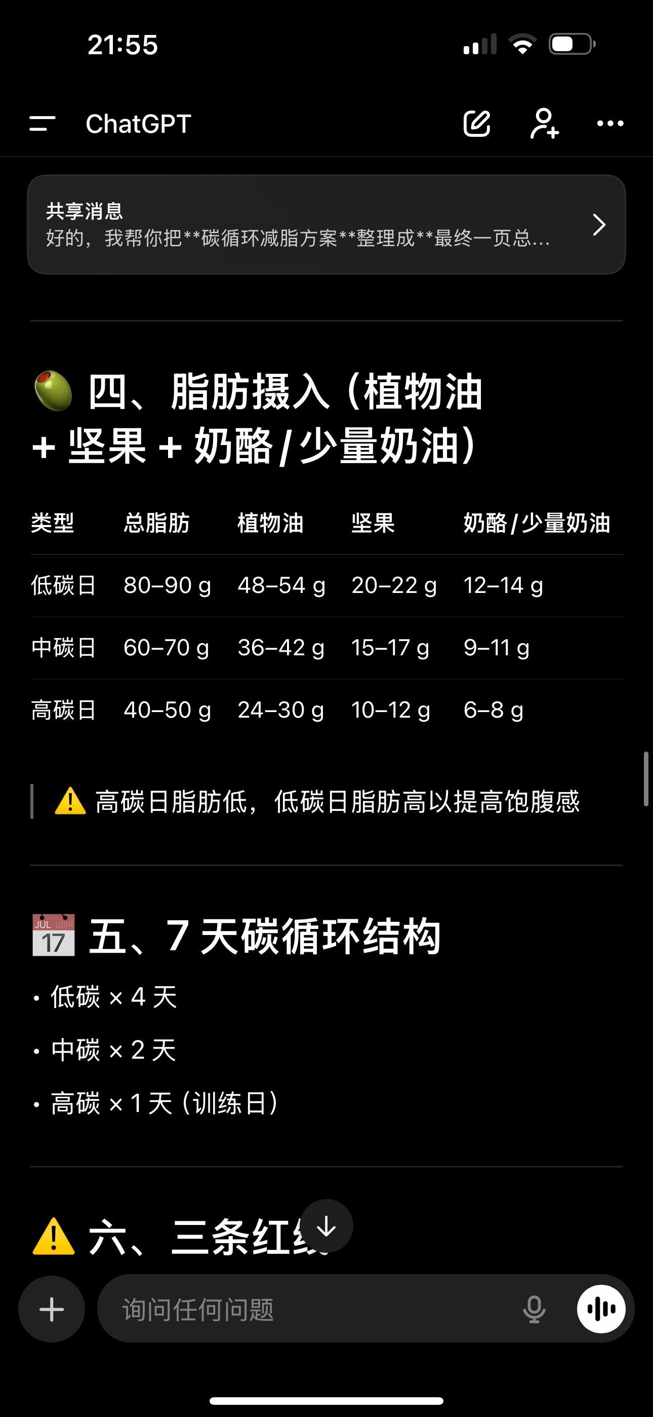 我用ai给我做了一份碳循环搭配运动的减脂计划,今天第四天掉了2kg。但是,第五天