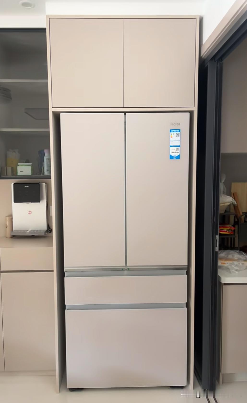 冰箱预留尺寸大了怎么办?莫慌! 客户装修时先做柜子,后买冰箱,结果冰箱送到家,两边缝隙太大美观,客户非常后悔没有先选购冰箱再打柜子,后来经过局改花费一两百加装了封条,还是很完美啦!! 冰箱预留 冰箱省空间 厨房设计冰箱 冰箱窄边 冰箱侧缝收纳 冰箱垫高 冰箱收纳设计