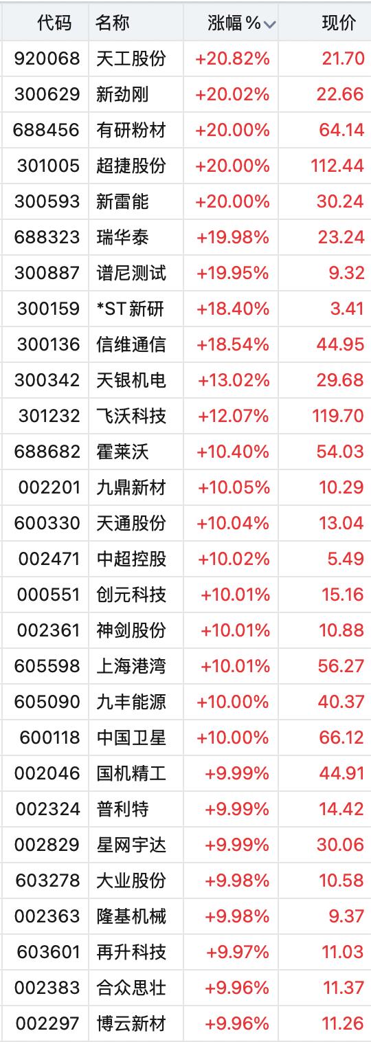 12月24日,A股商业航天板块走出强势上涨行情。早盘板块低开后快速企稳反弹,午后涨幅进一步扩大并持续发力拉升,市场交易活跃度显著提升。截至发稿,板块内涨停个股扎堆涌现,表现十分抢眼:新劲刚、有研粉材、超捷股份、新雷能4只个股收获20%涨停;瑞华泰、谱尼测试、九鼎新材等近20只个股同步封住10%涨停,板块整体上涨势头强劲,成交额也随之快速攀升。 商业航天板块此次逆势爆发并非偶然,而是多项利好因素叠加共振的结果。消息层面,2025第三届商业航天发展大会暨第四届中关村商业航天大会于当日在北京举办,大会重点解读国家商业航天领域最新政策导向,聚焦关键技术协同攻关、产业生态体系构建等核心议题,搭建起“政产学研用”一体化对接平台,为行业发展筑牢政策支撑。与此同时,国内近期航天发射任务进入密集窗口期,12月23日长征十二号甲遥一运载火箭顺利发射,并开展一级火箭垂直回收尝试,成功为可回收火箭技术优化积累了实战经验,进一步强化了市场对商业航天领域技术突破的向好预期。 行业基本面维度,券商机构普遍研判,中国商业航天产业已迈入新一轮高速增长周期,大运力发射、低成本运营的行业趋势,正引领产业开启发展新纪元,而空间算力领域的崛起,更进一步拓宽了行业成长空间。相关数据显示,我国商业航天市场规模正持续扩张,预计到2030年市场规模将达到7万亿至10万亿元区间,万亿级蓝海市场为产业链上下游企业带来广阔发展机遇。资金层面同样释放积极信号,北向资金与国内机构资金当日同步加大布局力度,形成资金合力,为板块强势上涨提供了有力支撑。