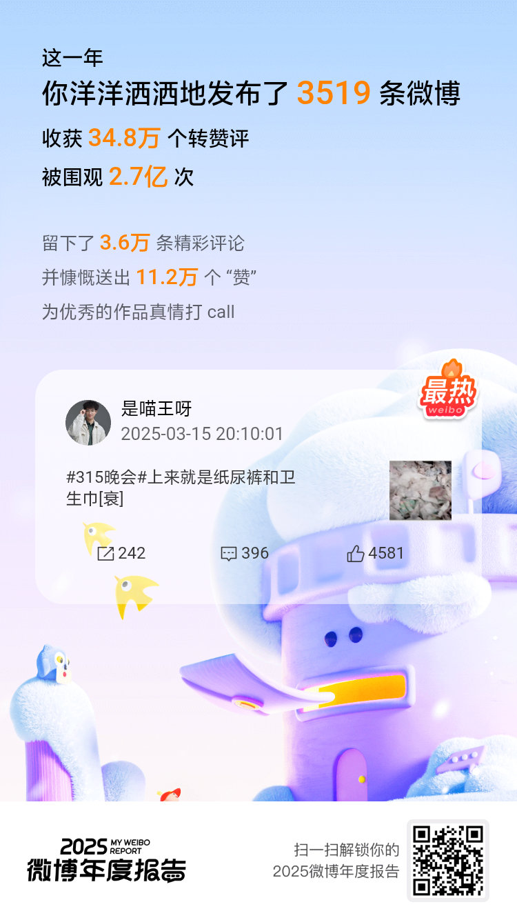微博年度报告 又是一年,一不小心拿了全勤奖,这份成绩单离不开你们一直以来的支持和陪伴!2025微博年度报告 微博之夜