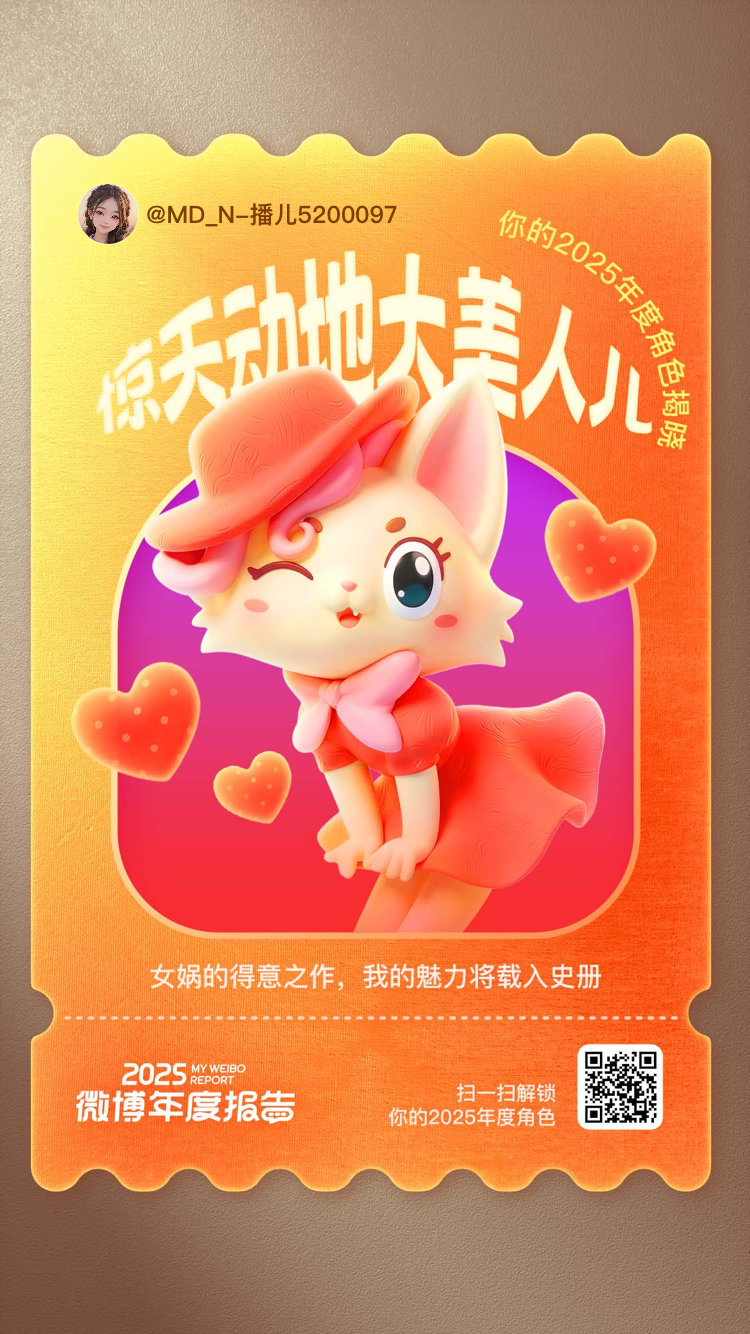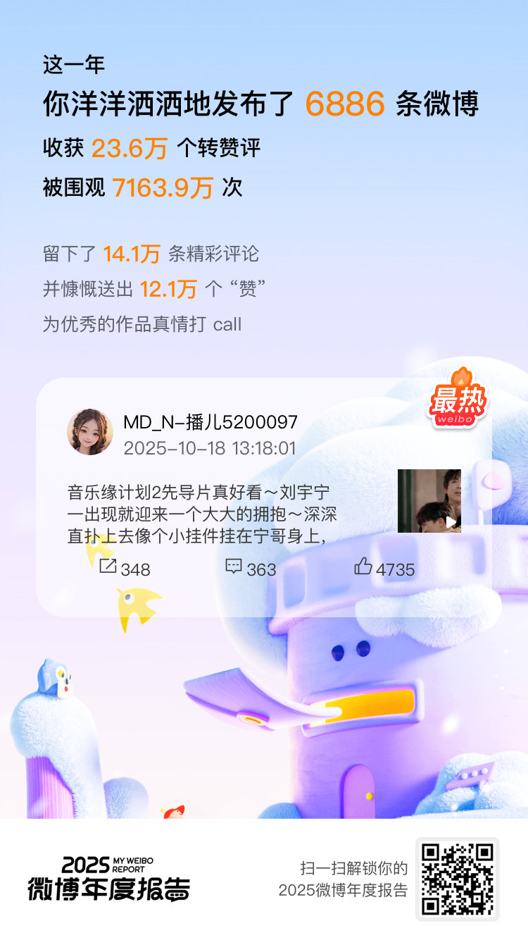托你们的福,橙V保持了365天 !这份快乐也传递给你,速戳>>2025微博年度报告 ,解锁你的微博年度总结吧!微博年度报告微博之夜