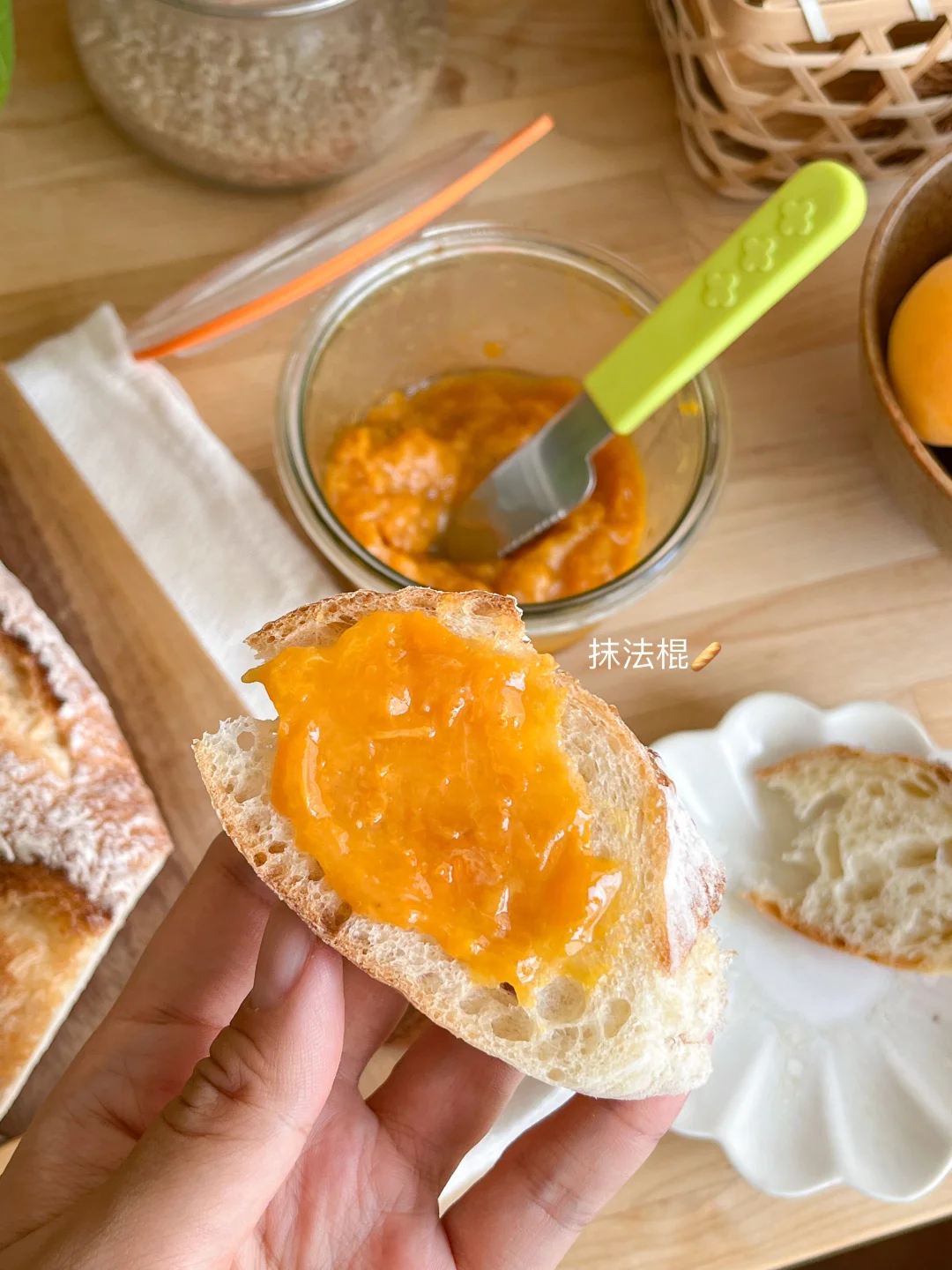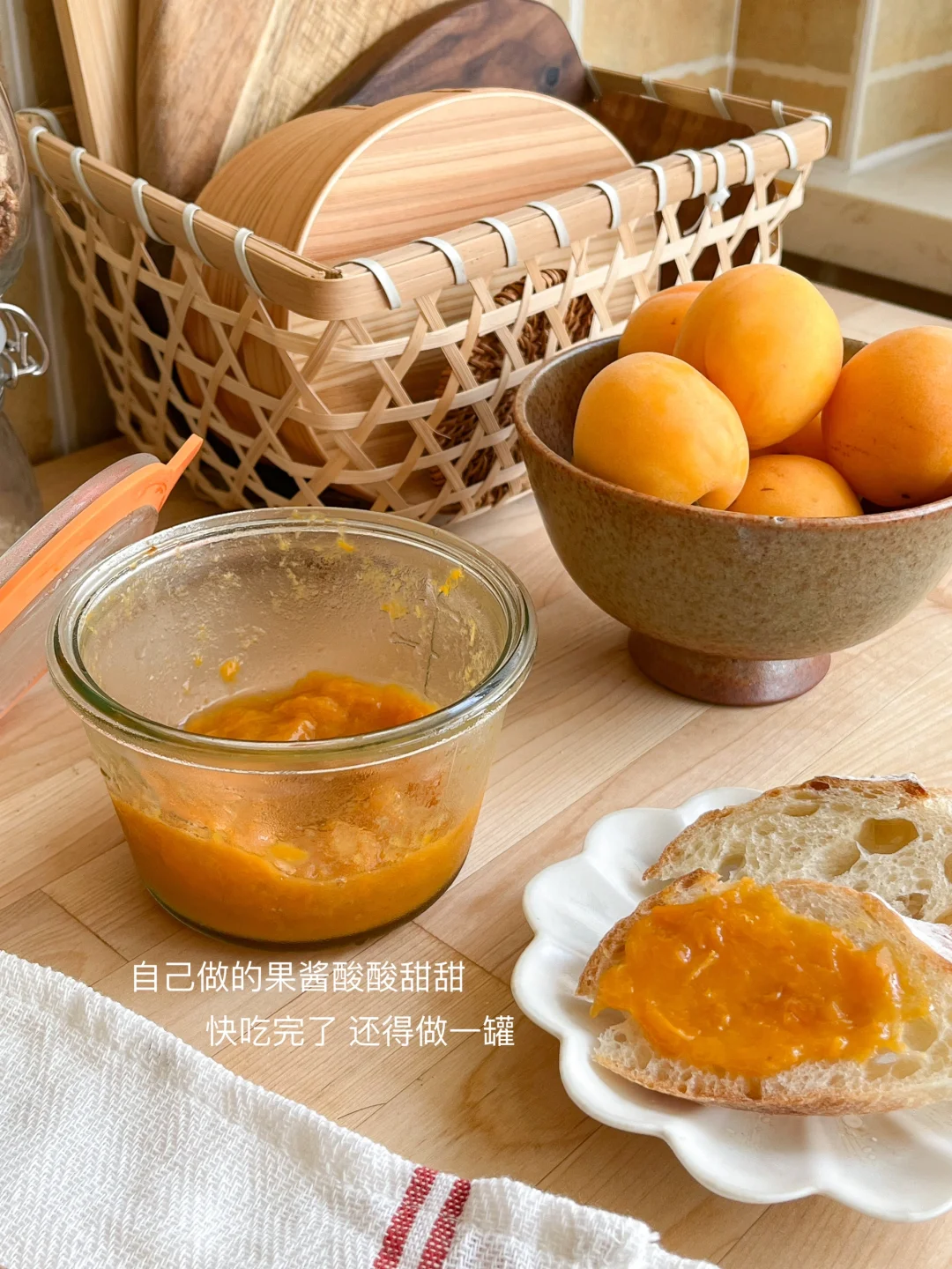 冰箱里的杏子果酱吃的就剩个底啦