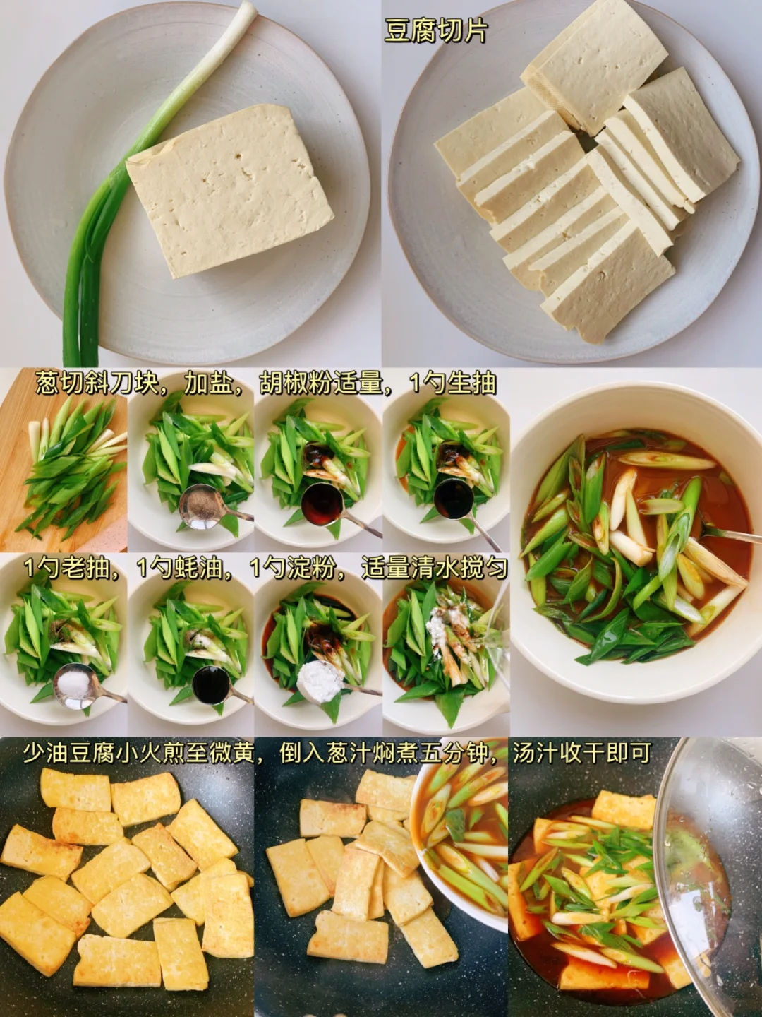 自制低Gi减脂餐,我想让减脂餐更好吃✨✨✨ [飞吻R]hi,又是快乐减脂的一天啊❗今日分享小葱烧豆腐💤 --- 🥗食材: 主料:豆腐,小葱 辅料:生抽,蚝油,老抽,胡椒粉,淀粉 【做法见图片】 ❤❤小提示: ✅豆腐小火煎至微黄,焦一点更好吃[吧唧R][吧唧R] [派对R][派对R]随手分享减脂餐,喜欢请关注‼️