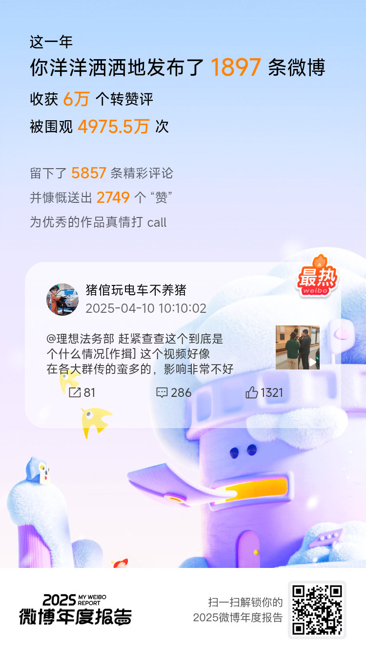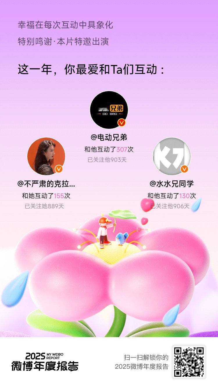 微博年度报告 实力这一块,咱确实拿捏了!2025年稳稳保持橙V身份359天!相逢的意义在于彼此照亮,这份成绩单离不开你们一直以来的支持和陪伴!你的专属年度播报也已生成,速来>>2025微博年度报告 围观!微博之夜