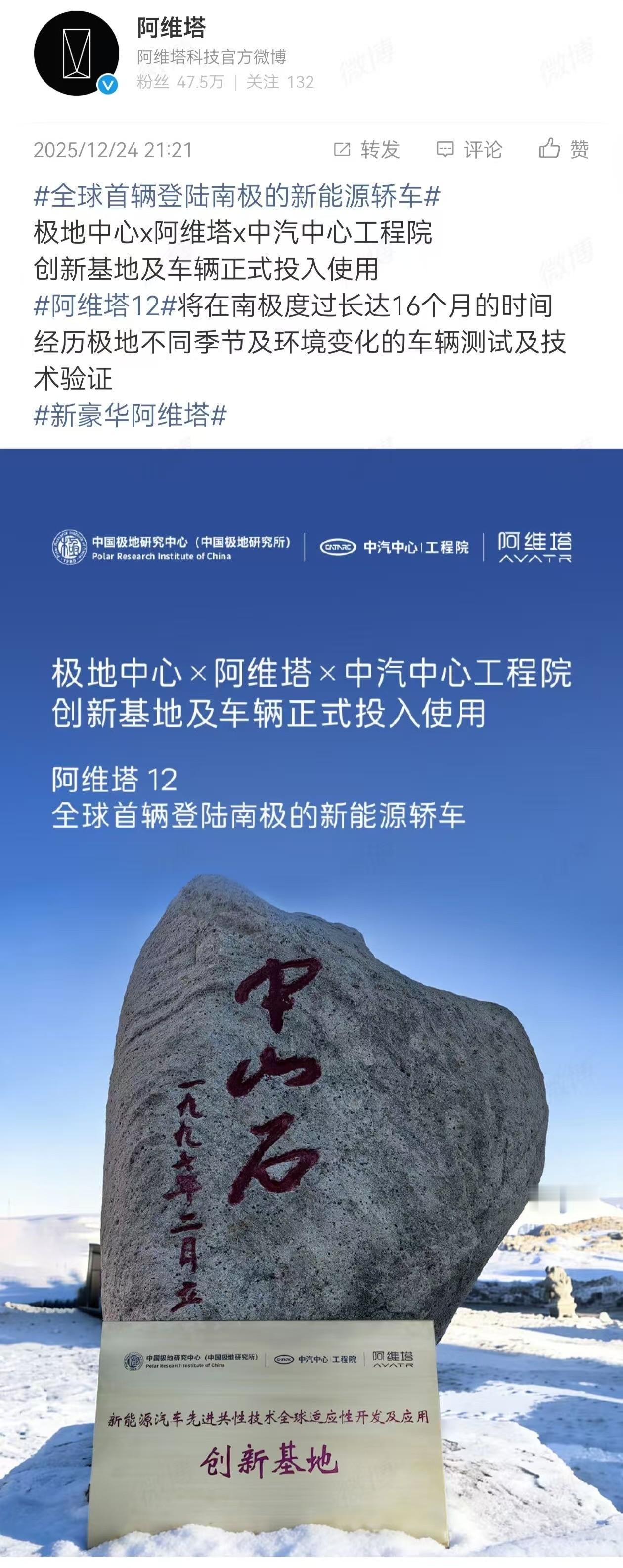 【阿维塔回应南极之旅争议】12月24日,阿维塔在社交媒体发文表示,“旗下车型阿维