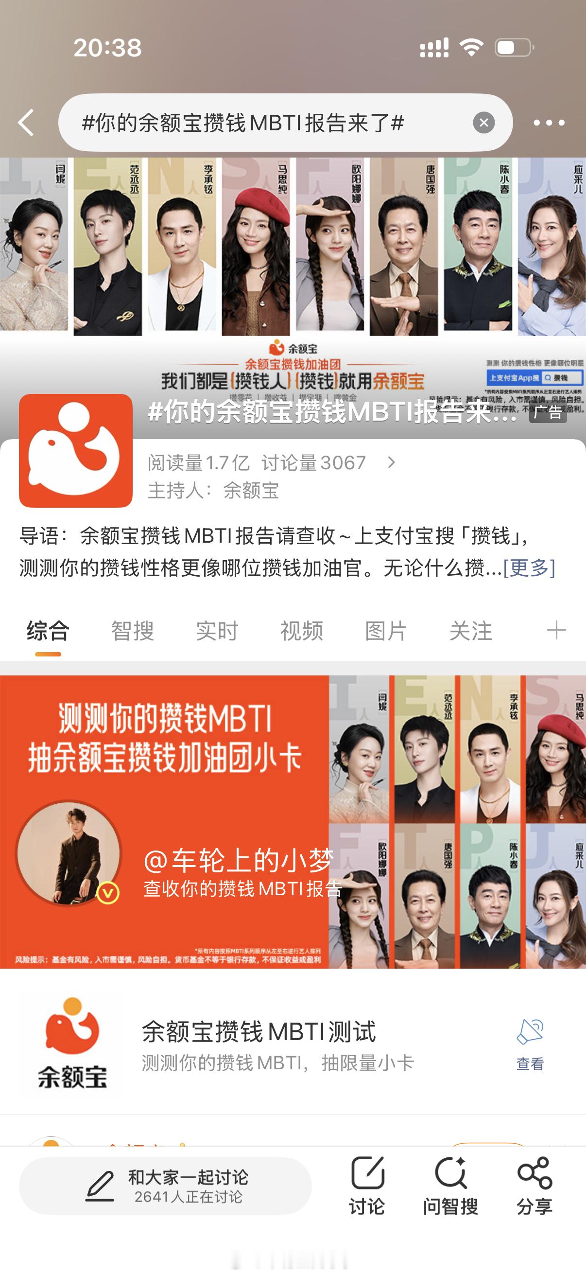 你的余额宝攒钱MBTI报告来了宝子,不要这样搞啊!我以为我上热搜了呢,你懂我心情从天上掉到地上摔稀碎的感觉嘛?