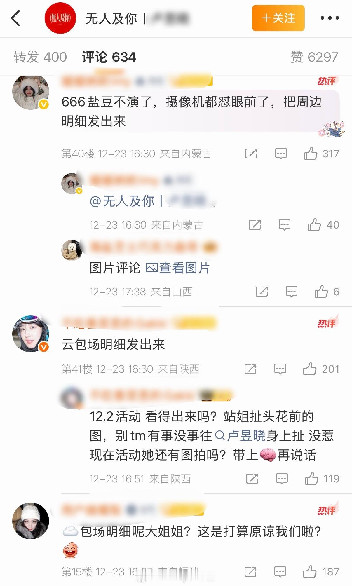 之前引发争议的卢昱晓站姐又发图了,评论区粉丝不买账,说摄像机都怼到眼前,演都不演了……