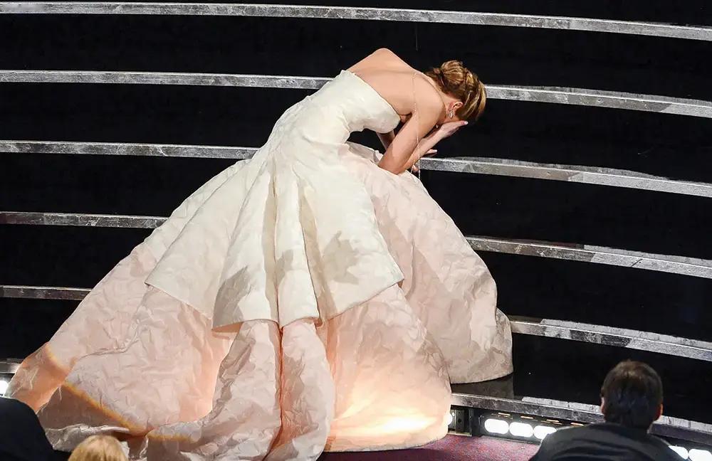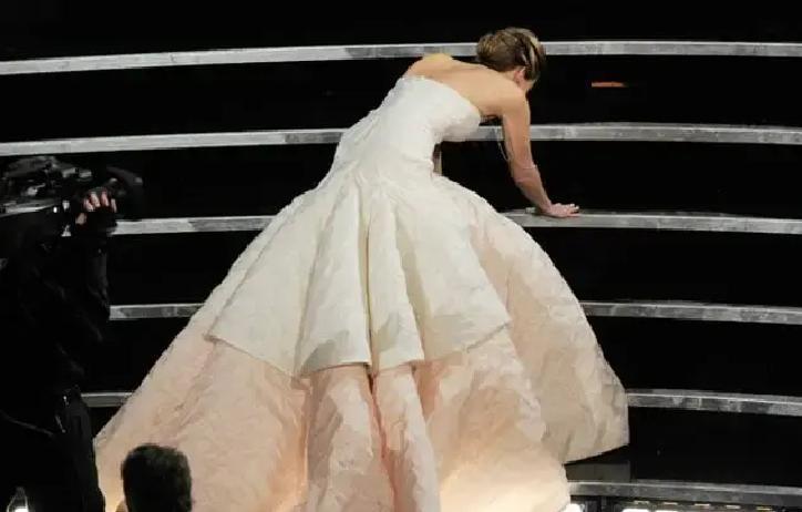 她这一摔,给Dior摔出了17%的销量增长。 那不是失误,是她公众形象的终极转折点。踩中裙摆的瞬间,全球镜头捕捉的尴尬,被她转化成了价值数亿的品牌资产。 领奖台上踉跄,她事后调侃:“省了我十年假装谦逊的功夫。” 这句话被《纽约时报》收藏为危机公关范本。她用自嘲堵住了所有嘲讽的嘴。 数据不会撒谎:事件当天,Dior搜索量暴增400%。随后三年,红毯礼服短拖尾设计比例上升42%,防滑设计专利数翻倍。一场意外,推动了一个行业的细节改良。 如今,Dior要复刻那条“摔倒的礼服”放进展览。你看,时尚史铭记的不是完美无瑕,而是那个让完美露出破绽、让真实得以呼吸的瞬间。 真正的强大,不是从不摔倒,而是摔倒后,全世界都记住你站起来的姿态。